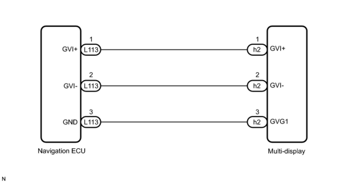 This is the display signal circuit from the navigation ECU to the multi-display.