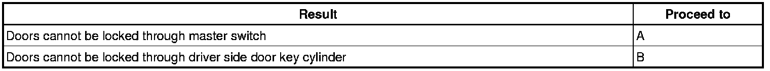 DOOR LOCK: POWER DOOR LOCK CONTROL SYSTEM: All Doors LOCK/UNLOCK Functions do not Operate Via Master Switch, Driver Side Door Key Cylinder