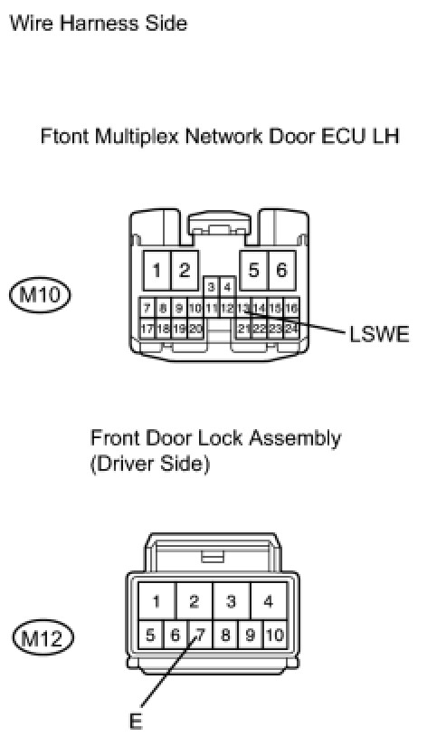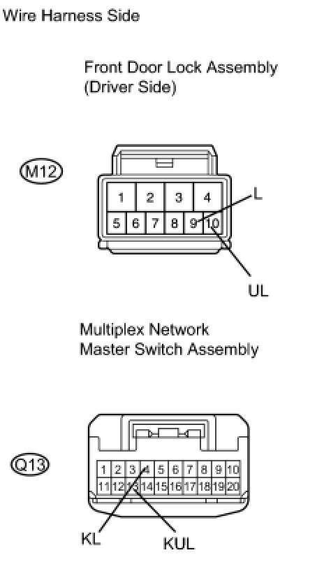 7. CHECK WIRE HARNESS (FRONT DOOR LOCK ASSEMBLY - MULTIPLEX NETWORK MASTER SWITCH)