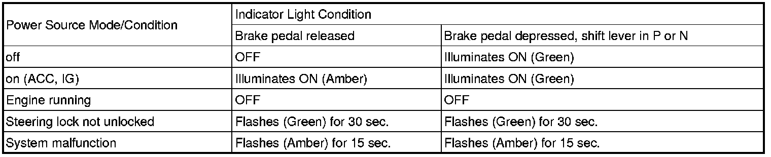 Engine start conditions or system malfunctions can be checked by the status of the engine switch indicator light.