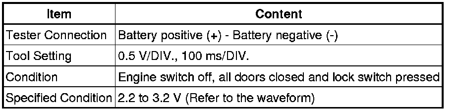 HINT: When measuring the battery voltage, while operating the lock switch of a door handle, bring the key (for card type) within the smart access system with push-button start operating range to perform the measurement. For the smart access system with push-button start operating range, refer to System Description Smart Access System With Push-Button Start.