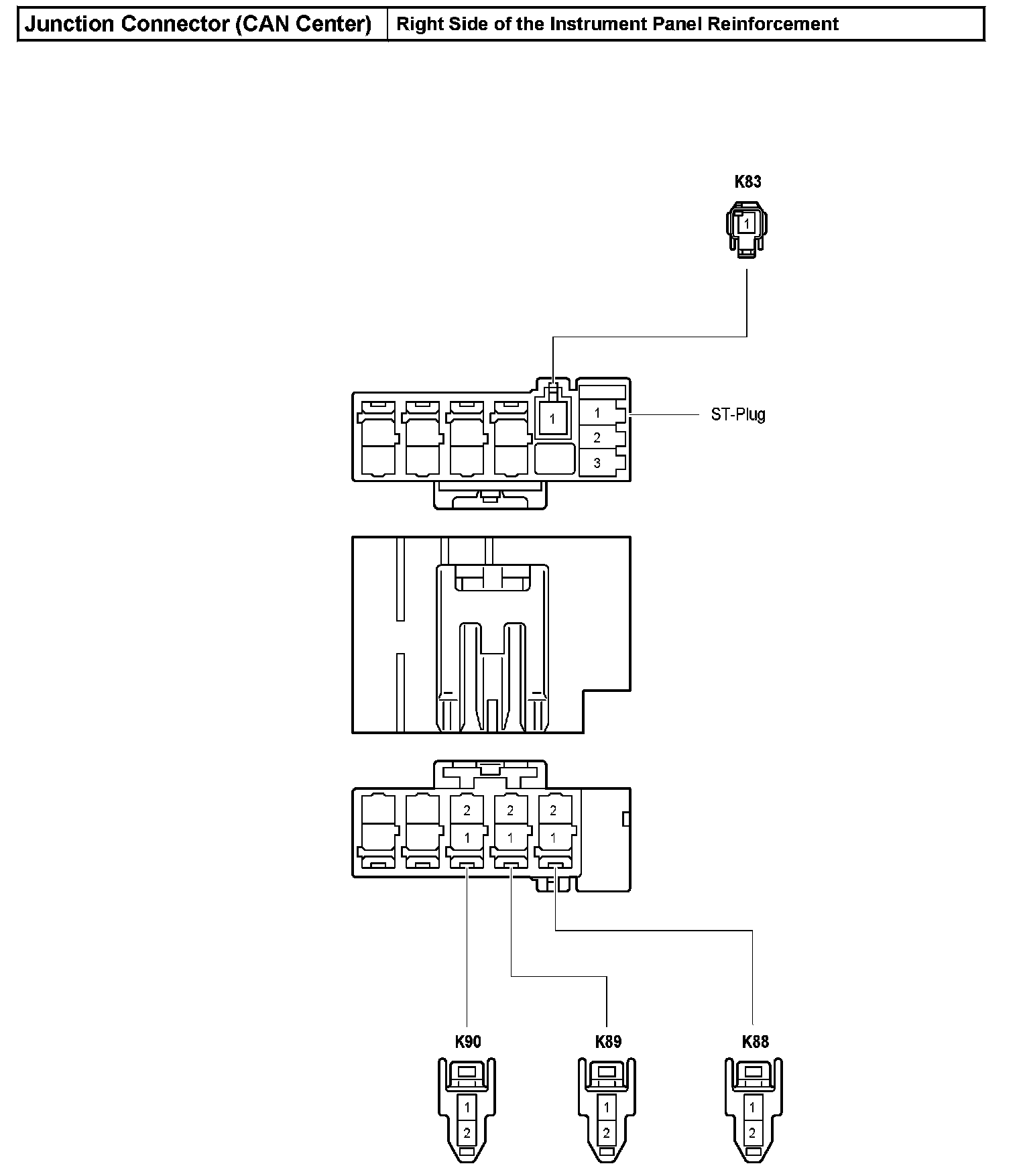 Junction Connector (CAN Center) - Right Side Of The Instrument Panel Reinforcement: