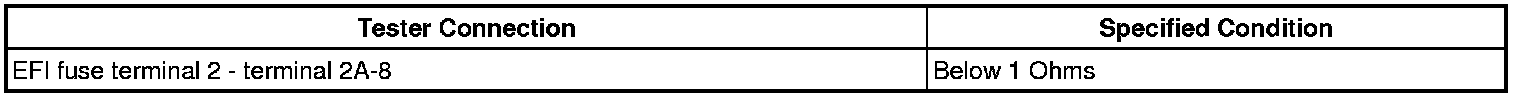 (1) Remove the EFI fuse. Measure the resistance between the terminals.