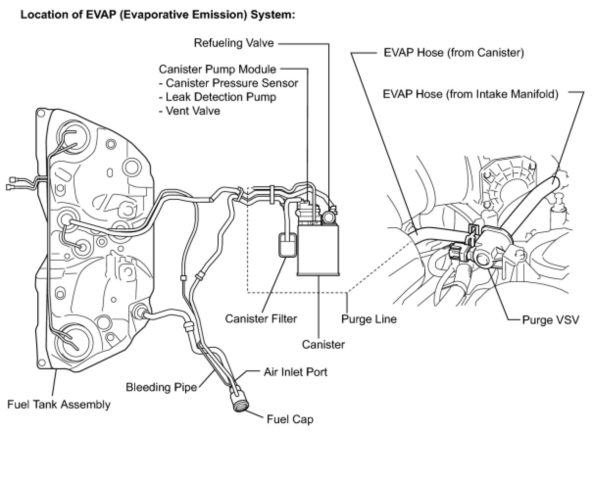 This monitor checks for EVAP (Evaporative Emission) system leaks and canister pump module malfunctions. The monitor starts 5 hours* after the engine switch is turned off. More than 5 hours are required for the fuel to cool down to stabilize the EVAP pressure, thus making the EVAP system monitor more accurate.