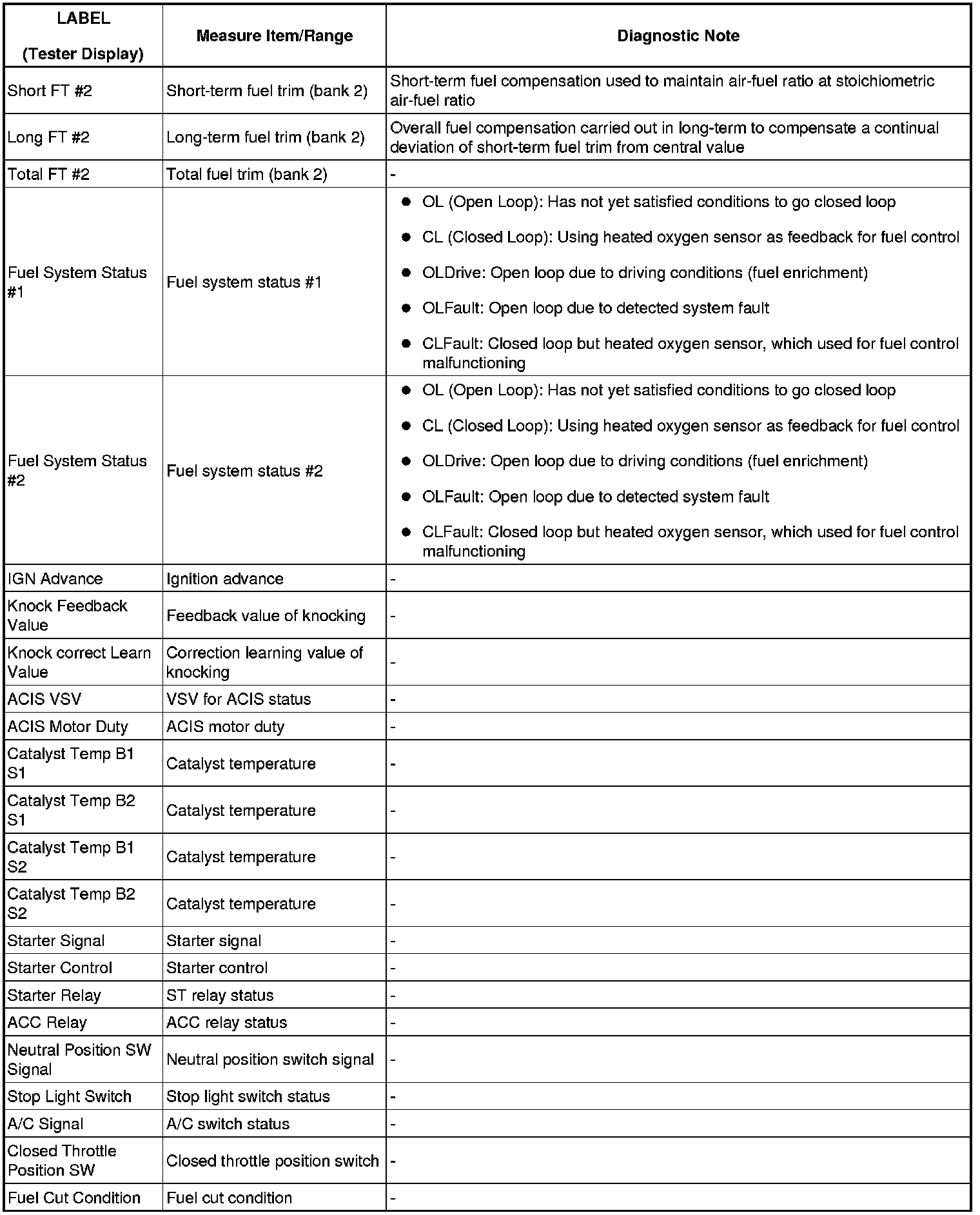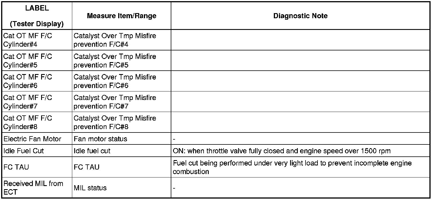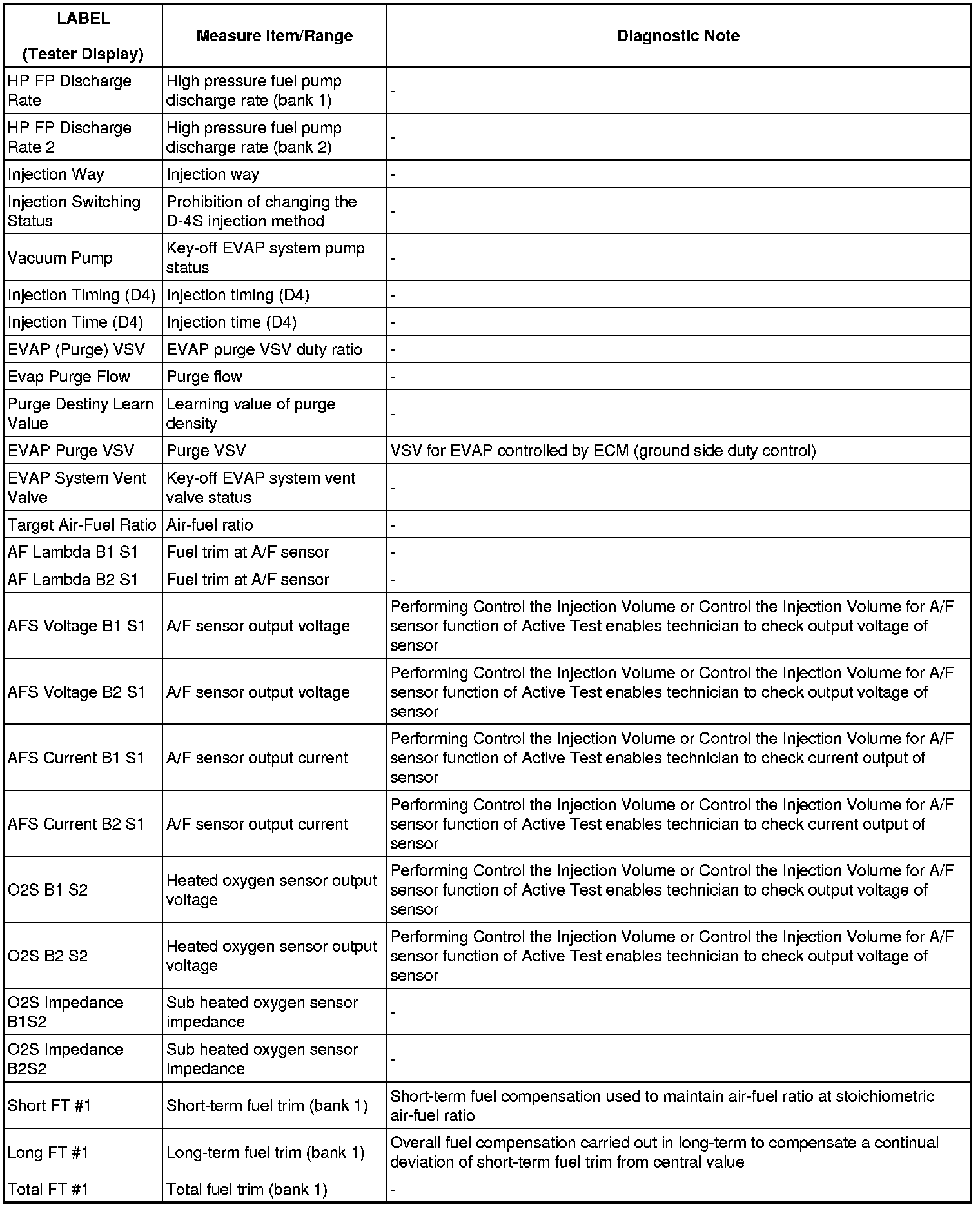 1UR-FSE ENGINE CONTROL SYSTEM: SFI SYSTEM: FREEZE FRAME DATA