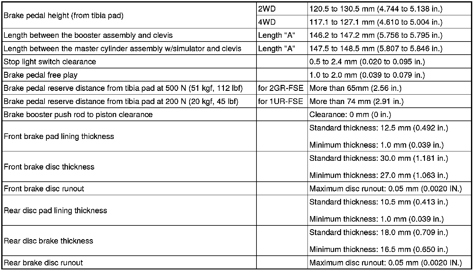 SERVICE SPECIFICATIONS: BRAKE: SERVICE DATA