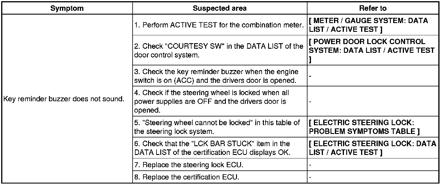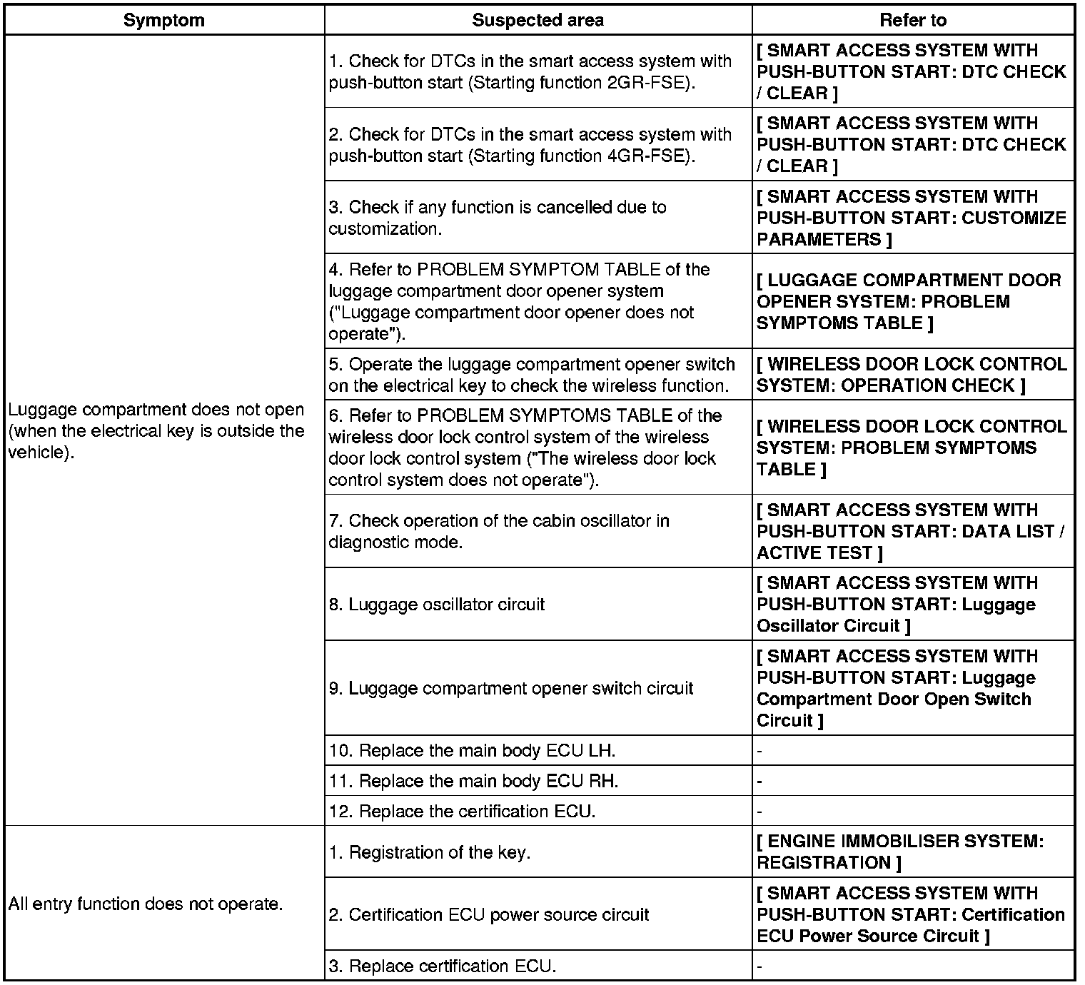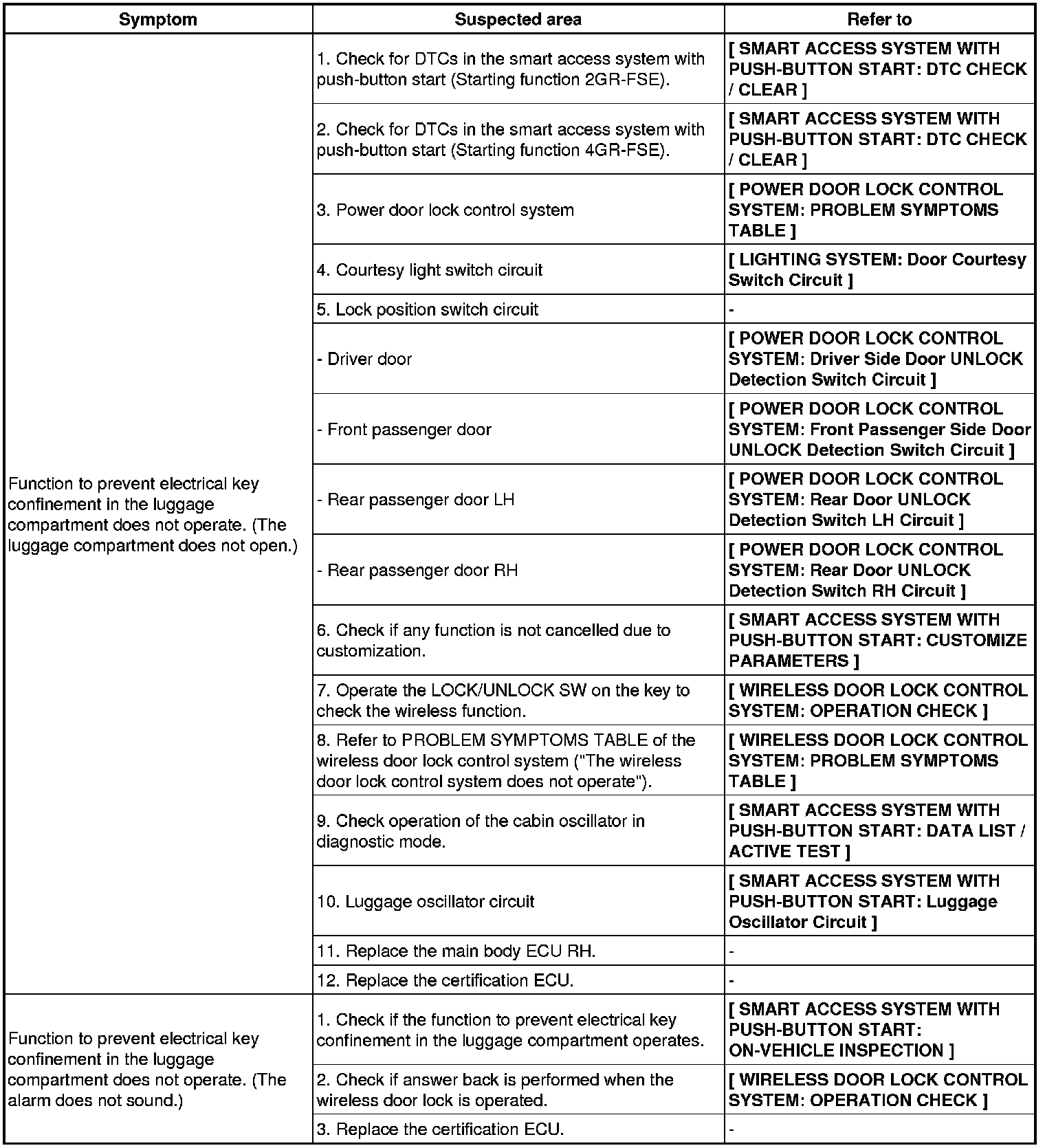 DOOR LOCK: SMART ACCESS SYSTEM WITH PUSH-BUTTON START: PROBLEM SYMPTOMS TABLE