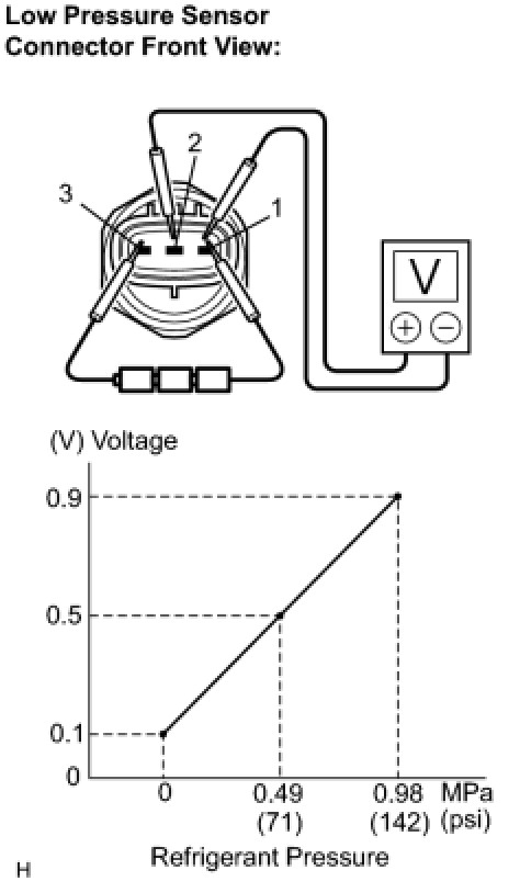 The voltage changes according to refrigerant pressure, as shown in the graph.