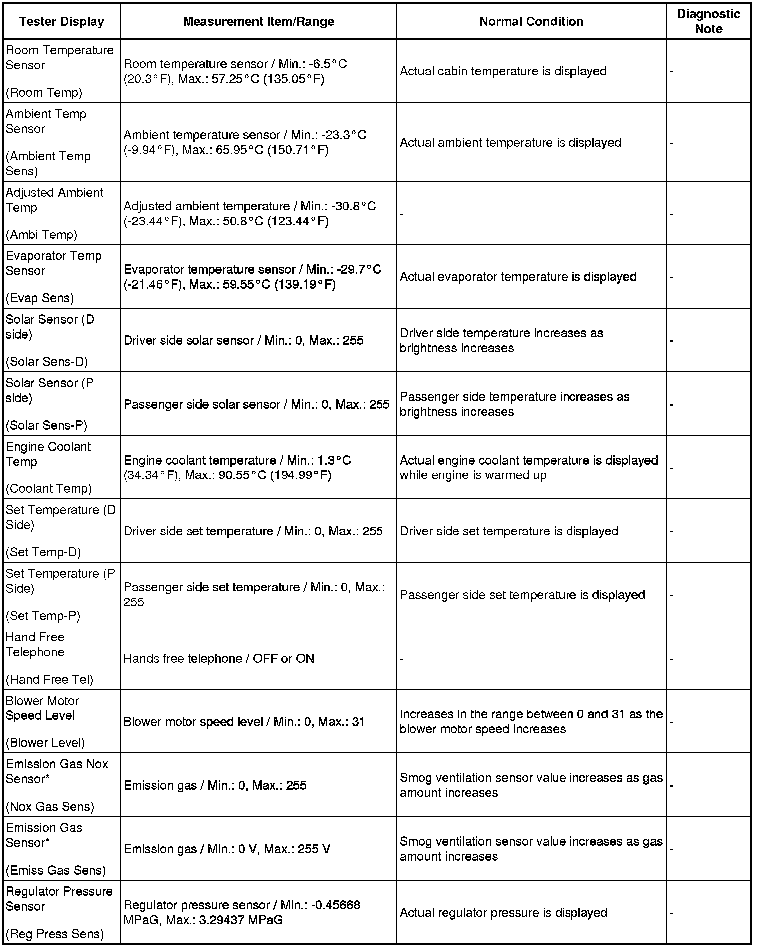 (1) for Air Conditioner: Body Electrical / Air Conditioner / Data List.