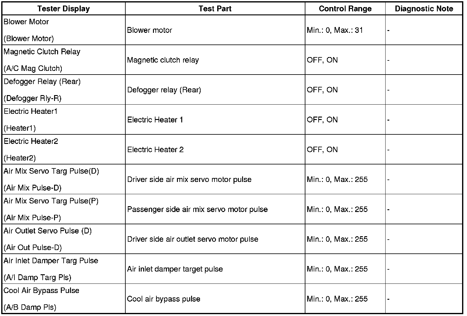(1) for Air Conditioner: Body Electrical / Air Conditioner / Active Test.