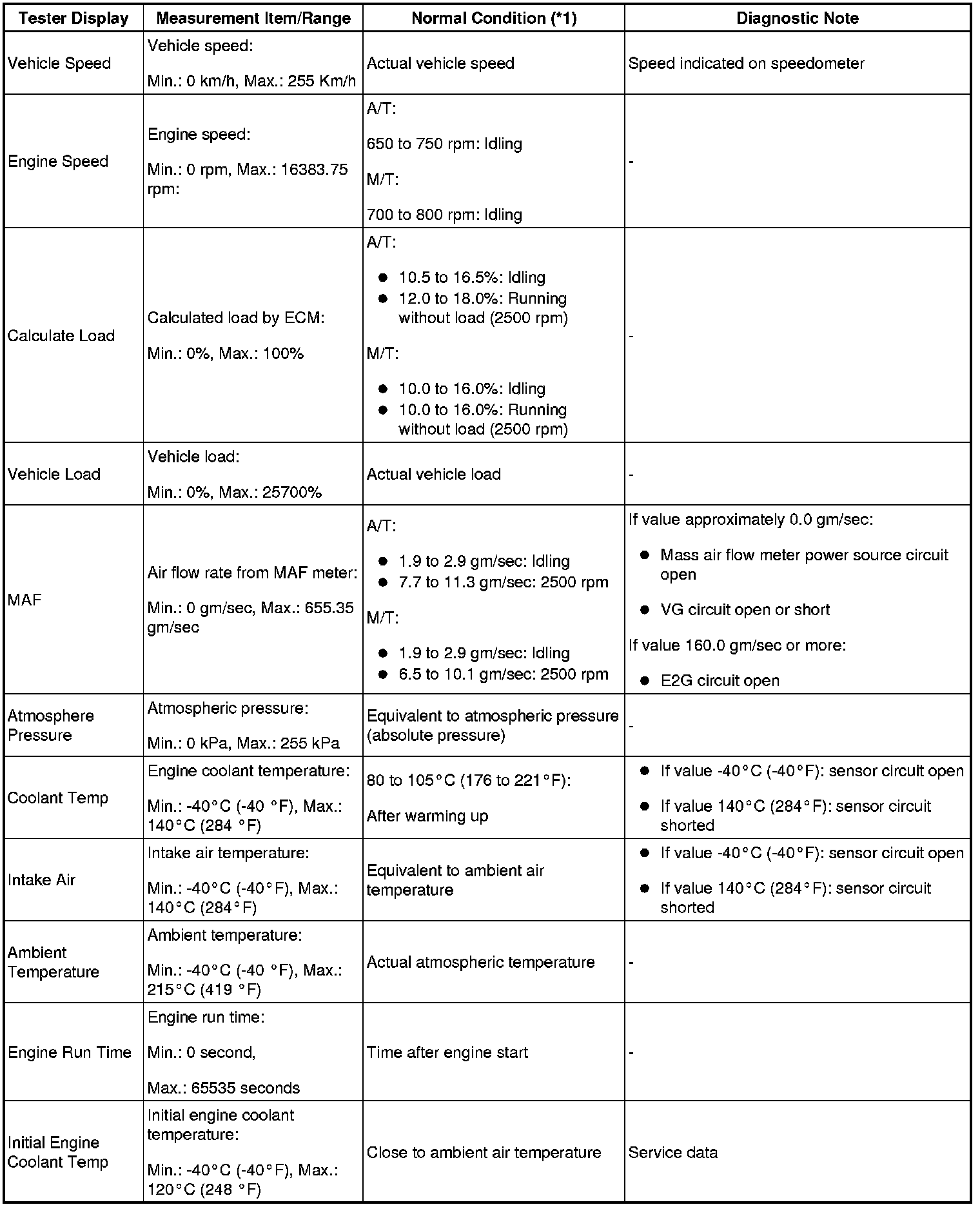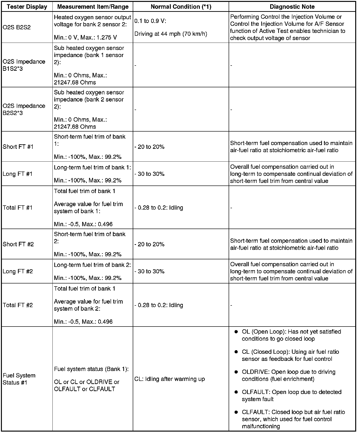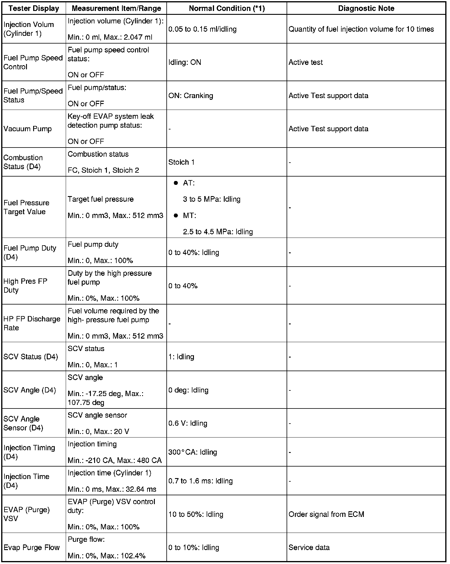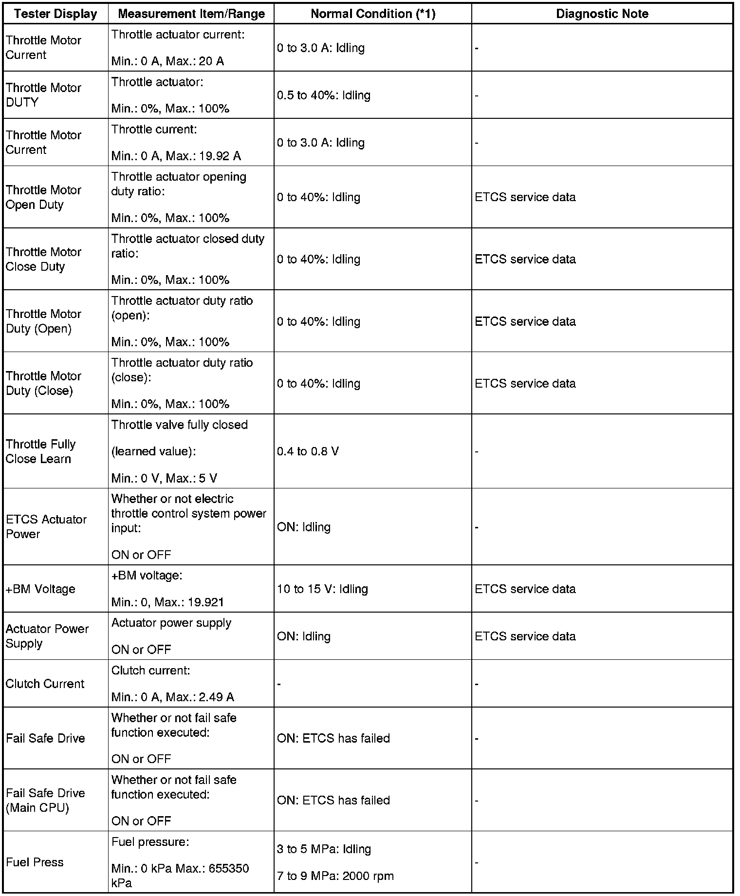 - *1: If no idling conditions are specified, the transmission gear selector lever should be in the N or P position, and the A/C switch and all accessory switches should be OFF.