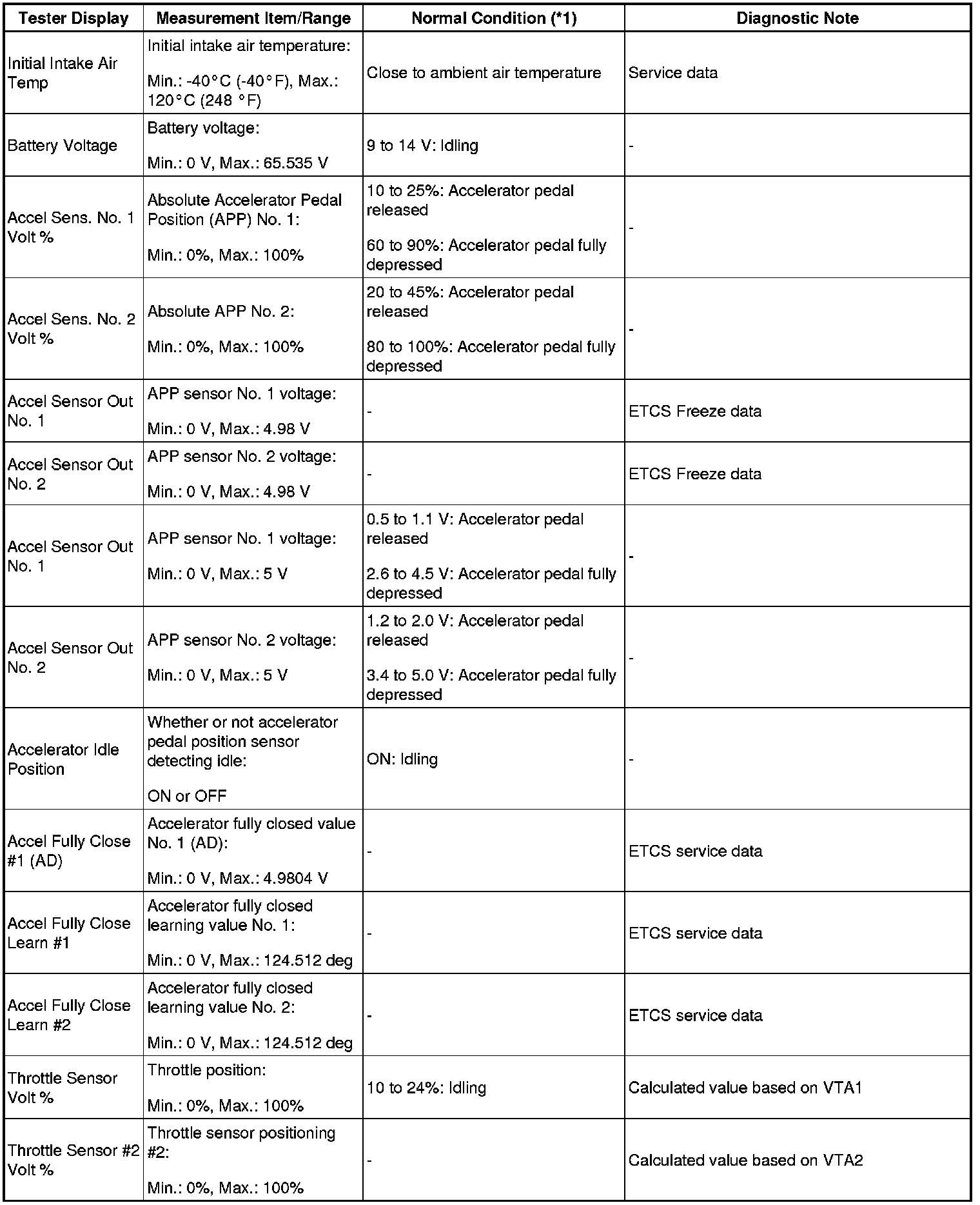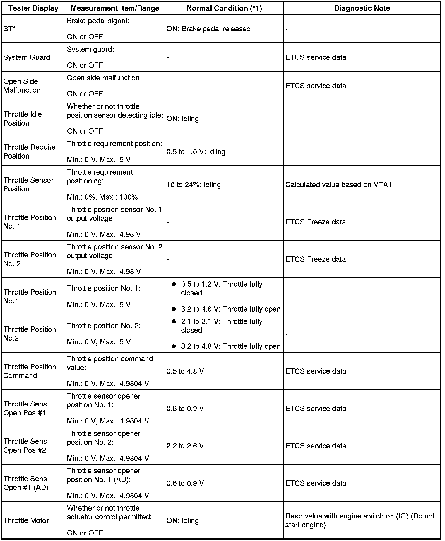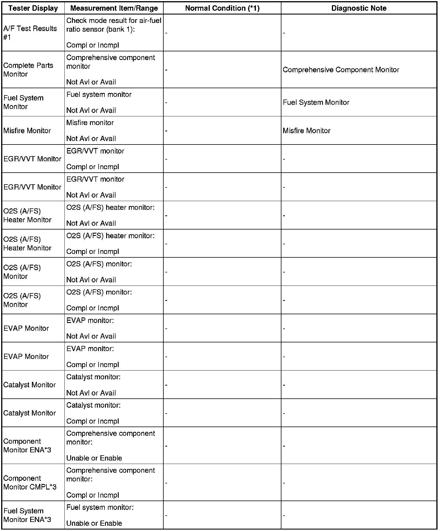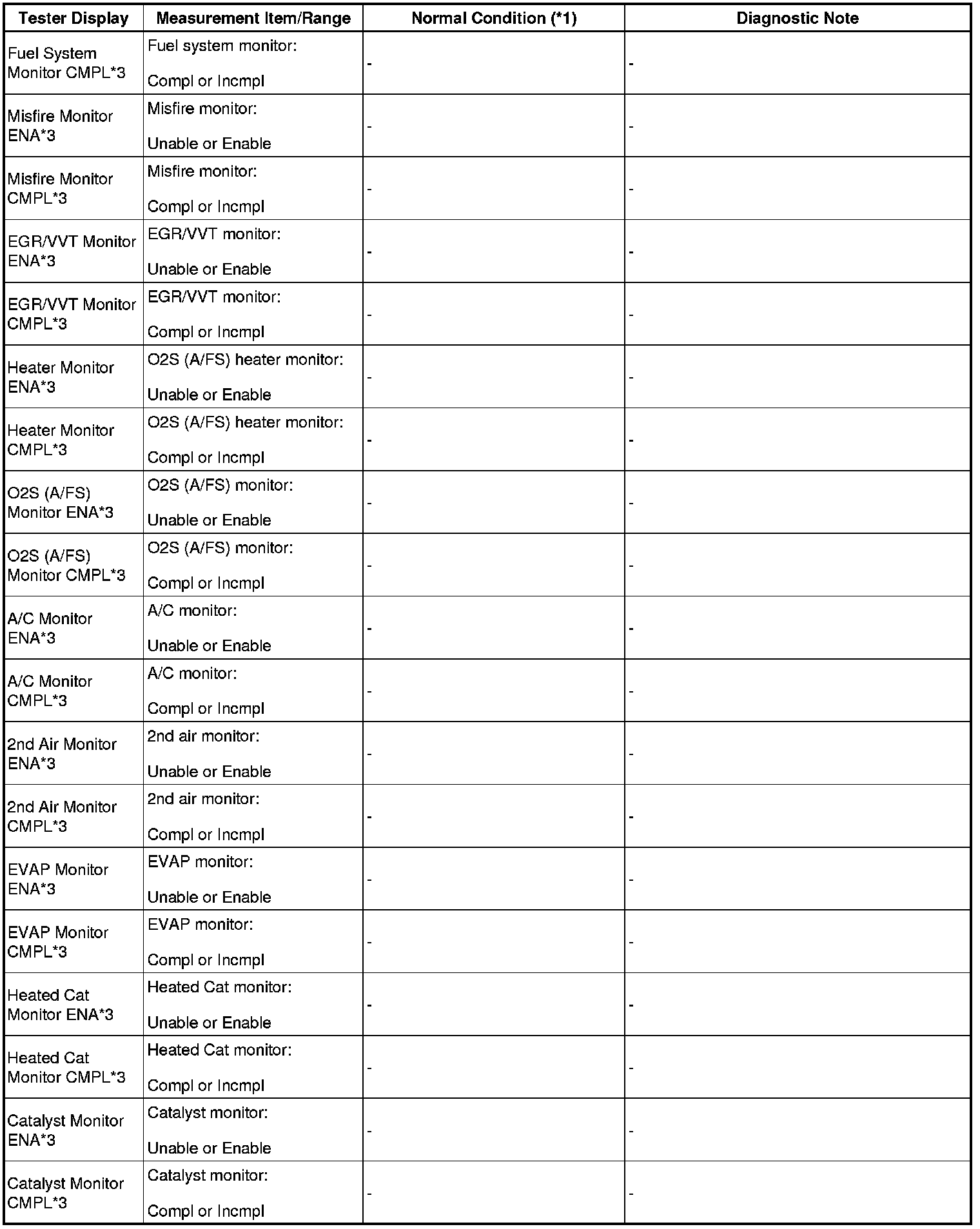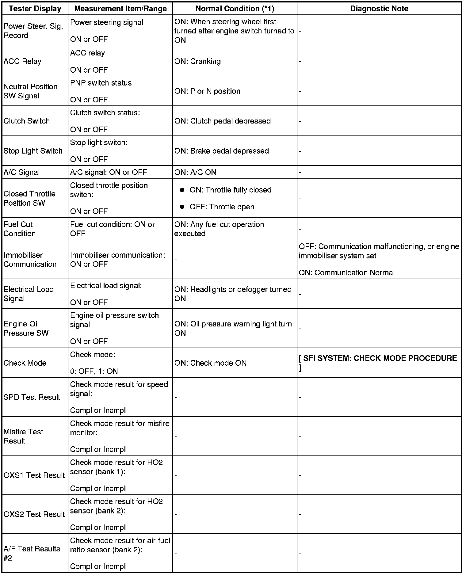 - *1: If no idling conditions are specified, the transmission gear selector lever should be in the N or P position, and the A/C switch and all accessory switches should be OFF.