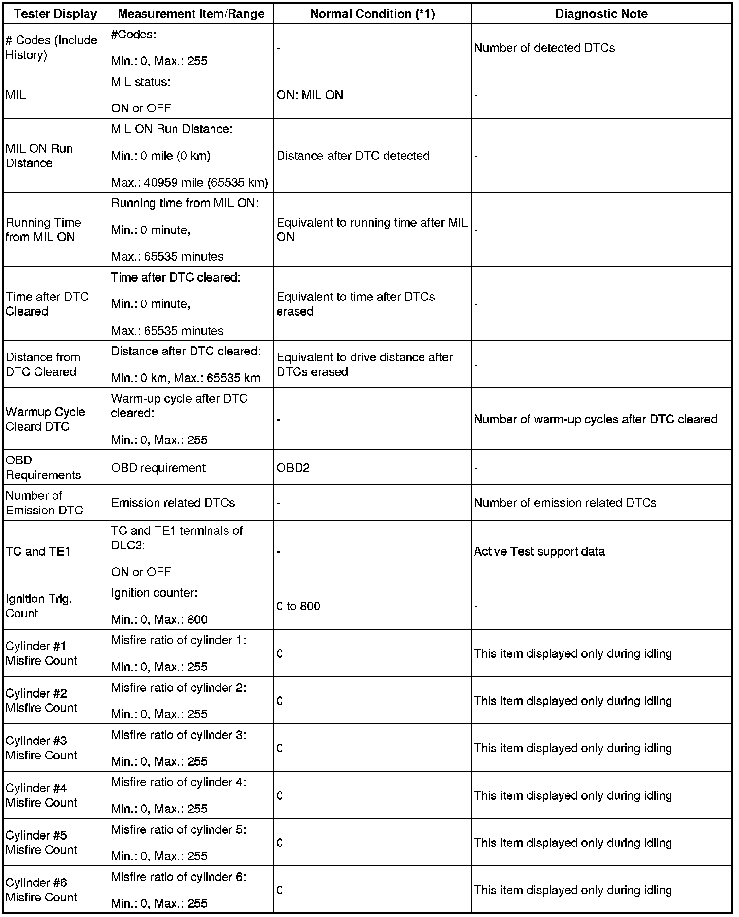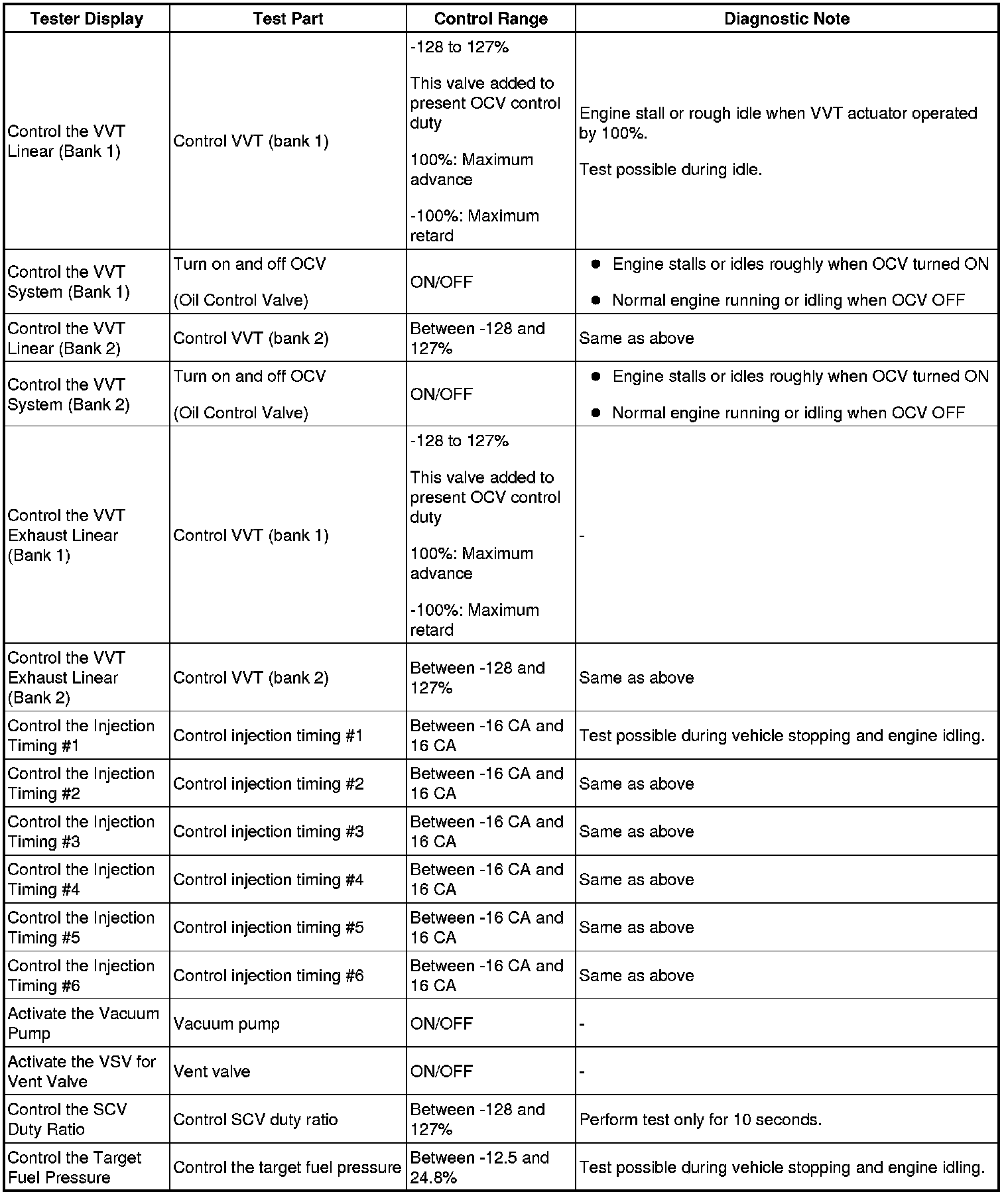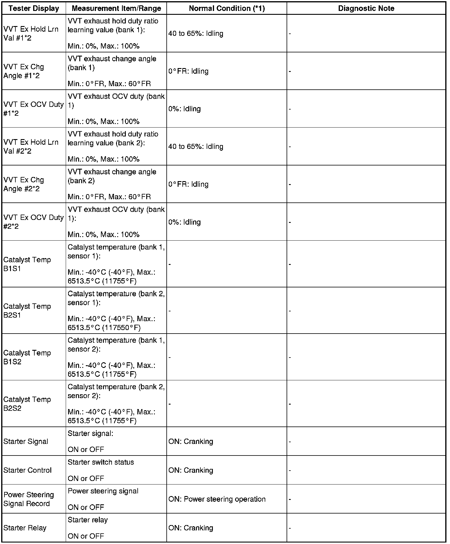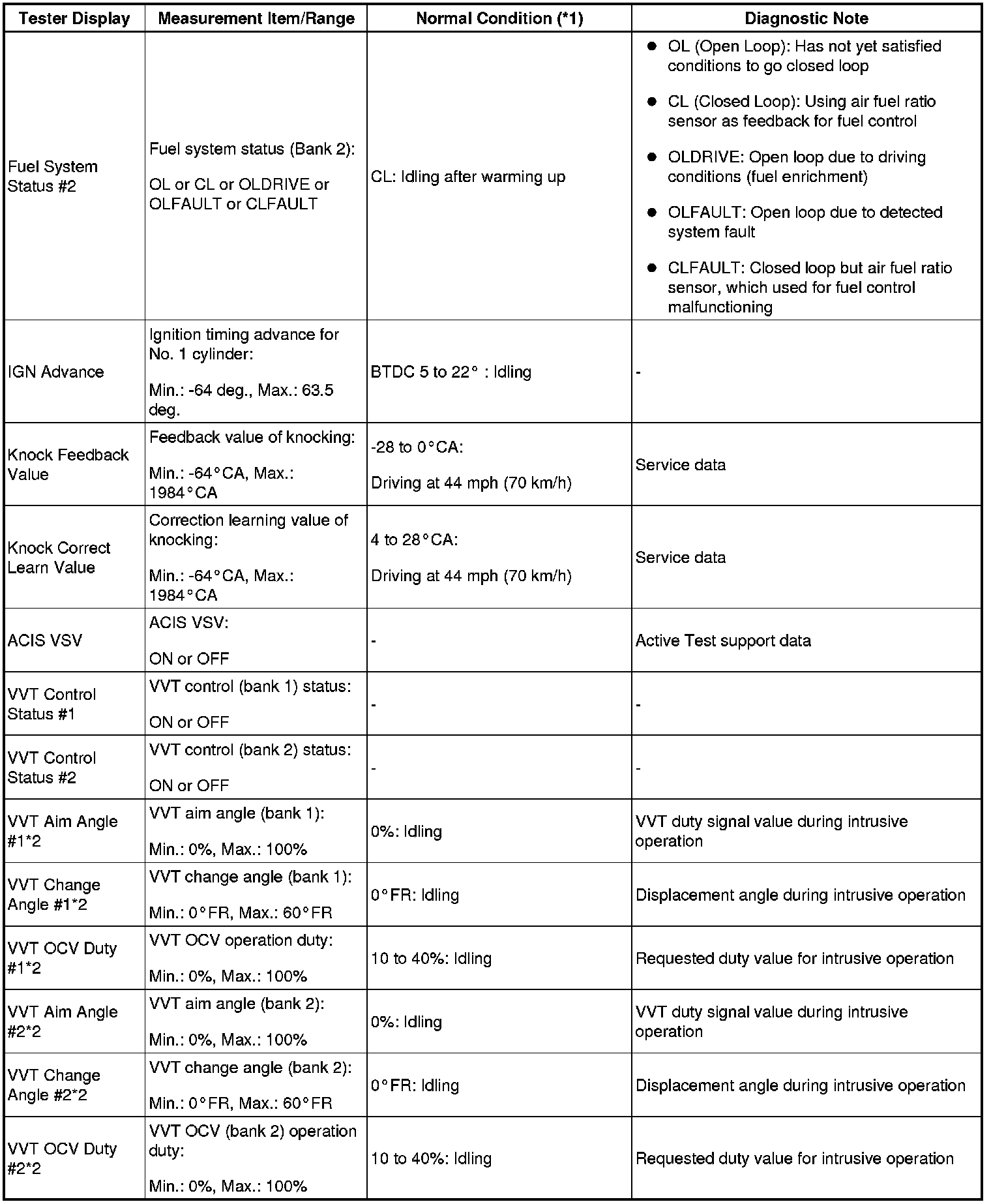 - *2: Data List values are only displayed when performing the following Active Test: VVT B1, VVT B2, VVT EX B1 and VVT EX B2. For other Active Test, the Data List value will be 0.