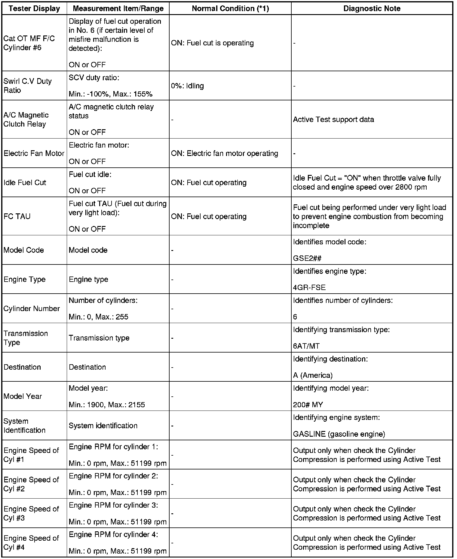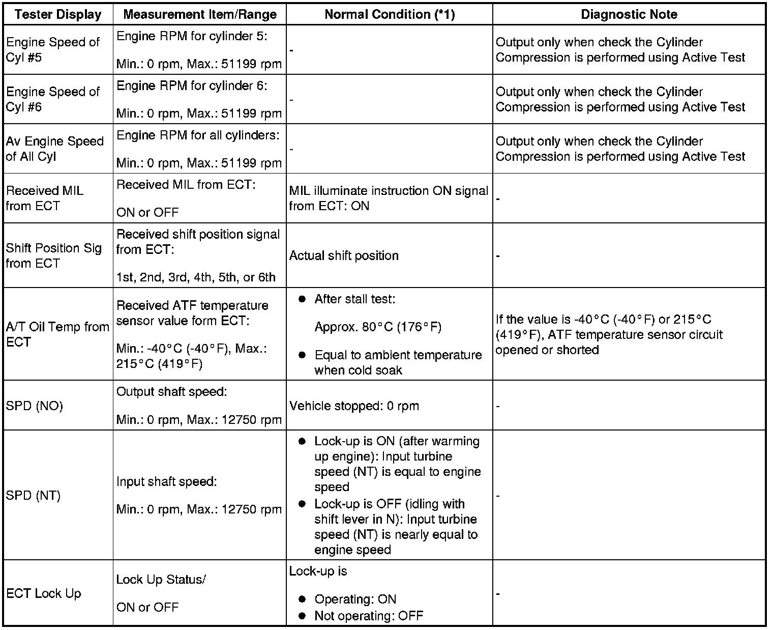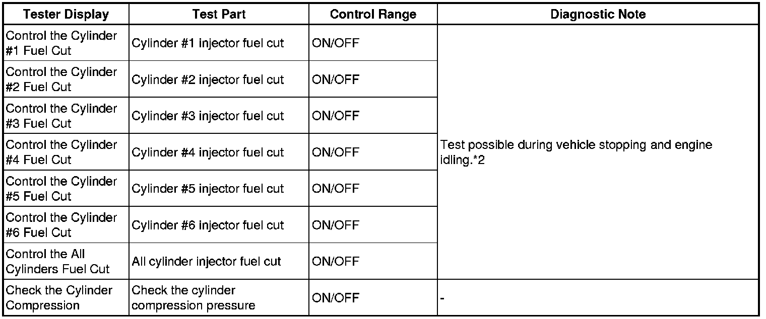 *2: When performing the Active Test item "Check the Cylinder Compression" and then cranking the engine, the ECM stops the fuel injection and ignition, and measures the engine speed for each cylinder.