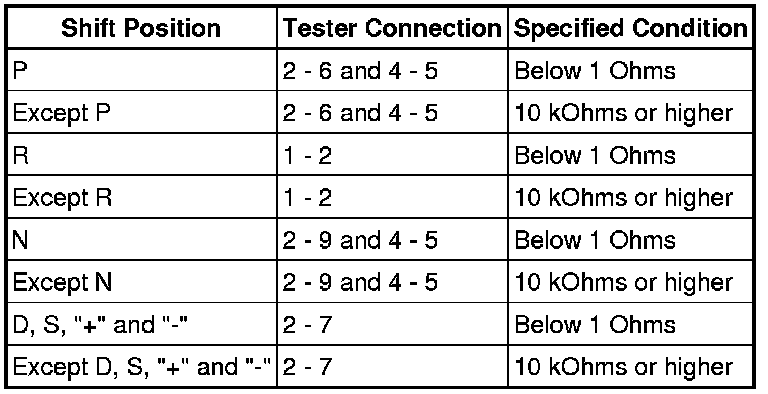 A760H AUTOMATIC TRANSMISSION: PARK / NEUTRAL POSITION SWITCH: INSPECTION
