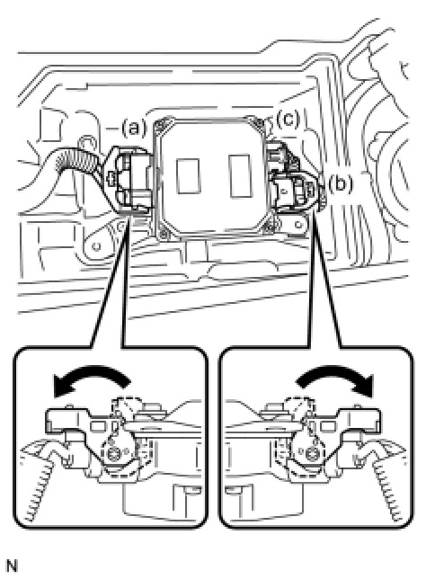 (b) Connect 2 power steering ECU assembly connectors (a) and (b) and securely lock the connectors.