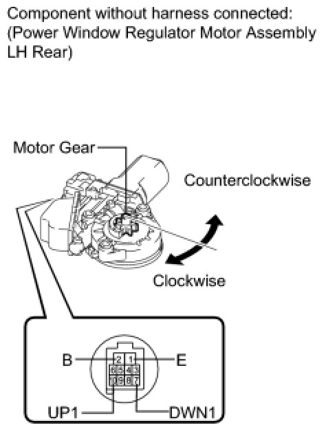 - If the result is not as specified, replace the power window regulator motor assembly LH rear.