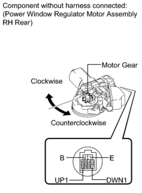 (b) Apply negative (-) battery voltage to connector terminals 1 (E) and 7 (DWN1) or 10 (UP1).