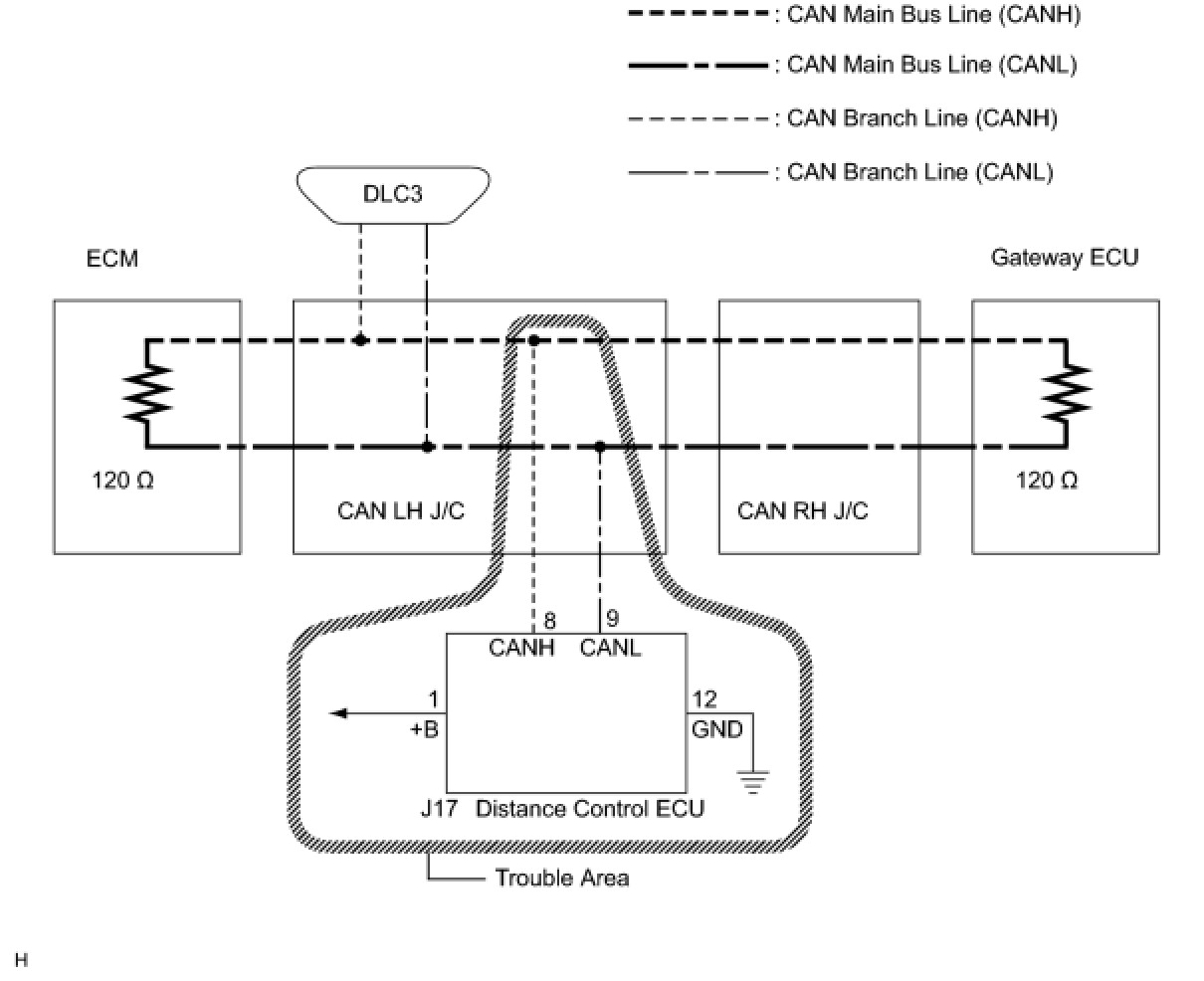 NG -- REPAIR OR REPLACE DISTANCE CONTROL ECU BRANCH WIRE OR CONNECTOR (CAN-H, CAN-L)
