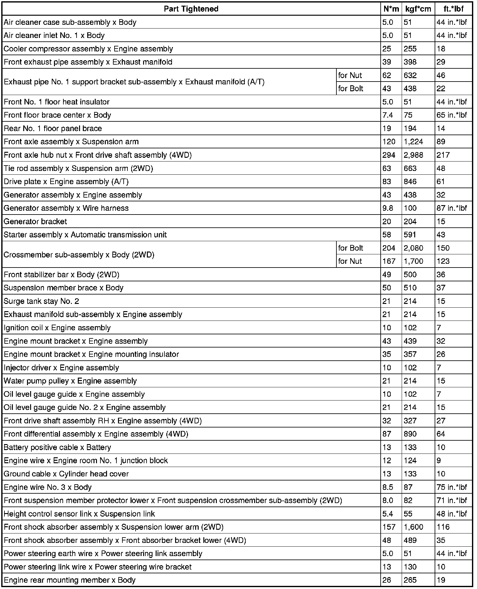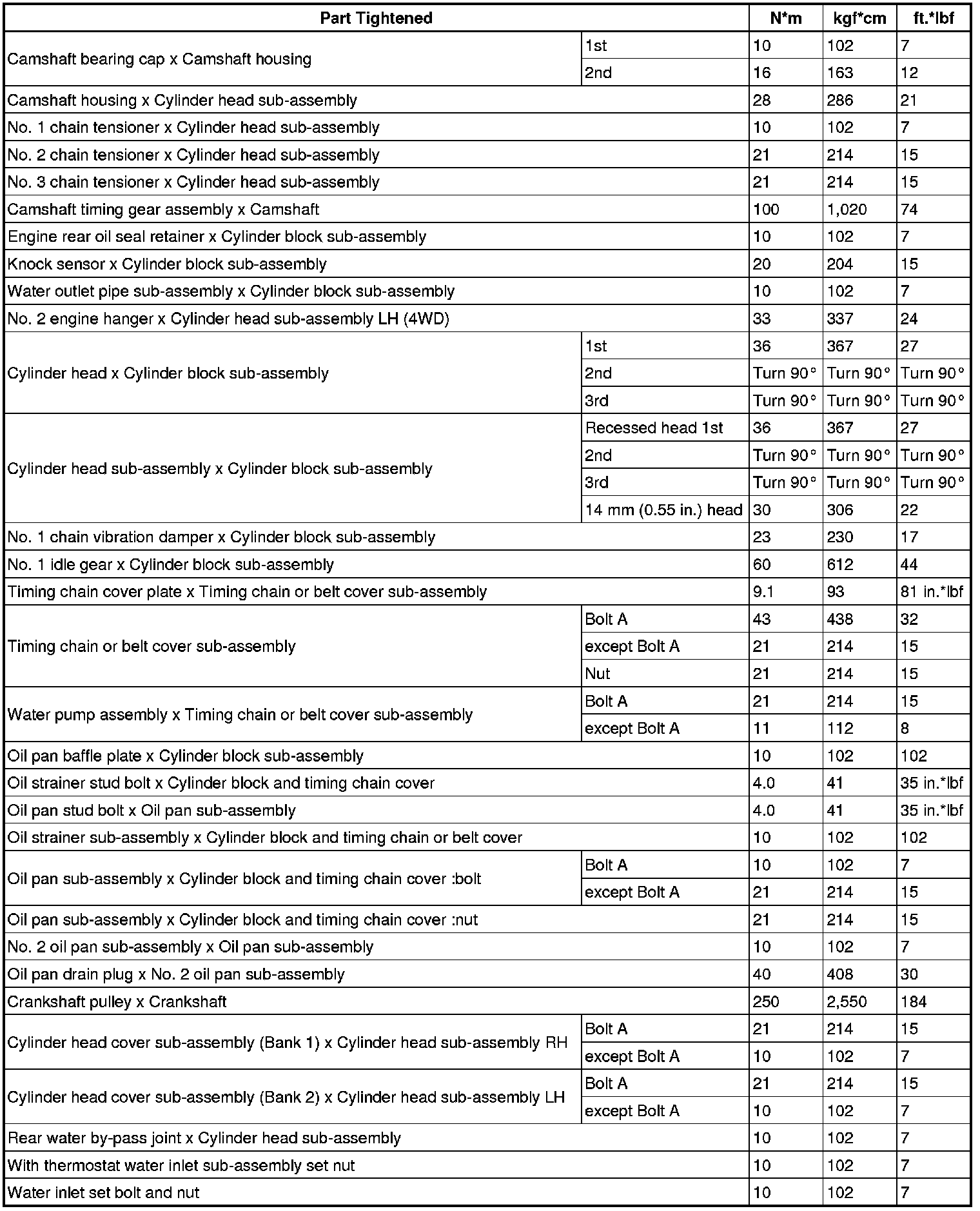 SERVICE SPECIFICATIONS: 4GR-FSE ENGINE MECHANICAL: TORQUE SPECIFICATIONS