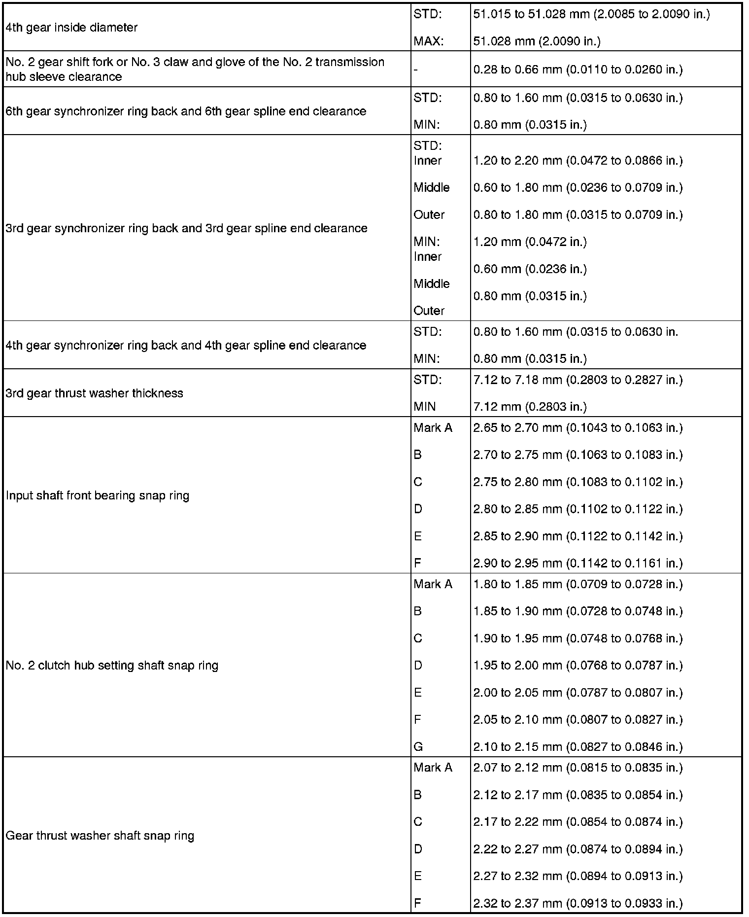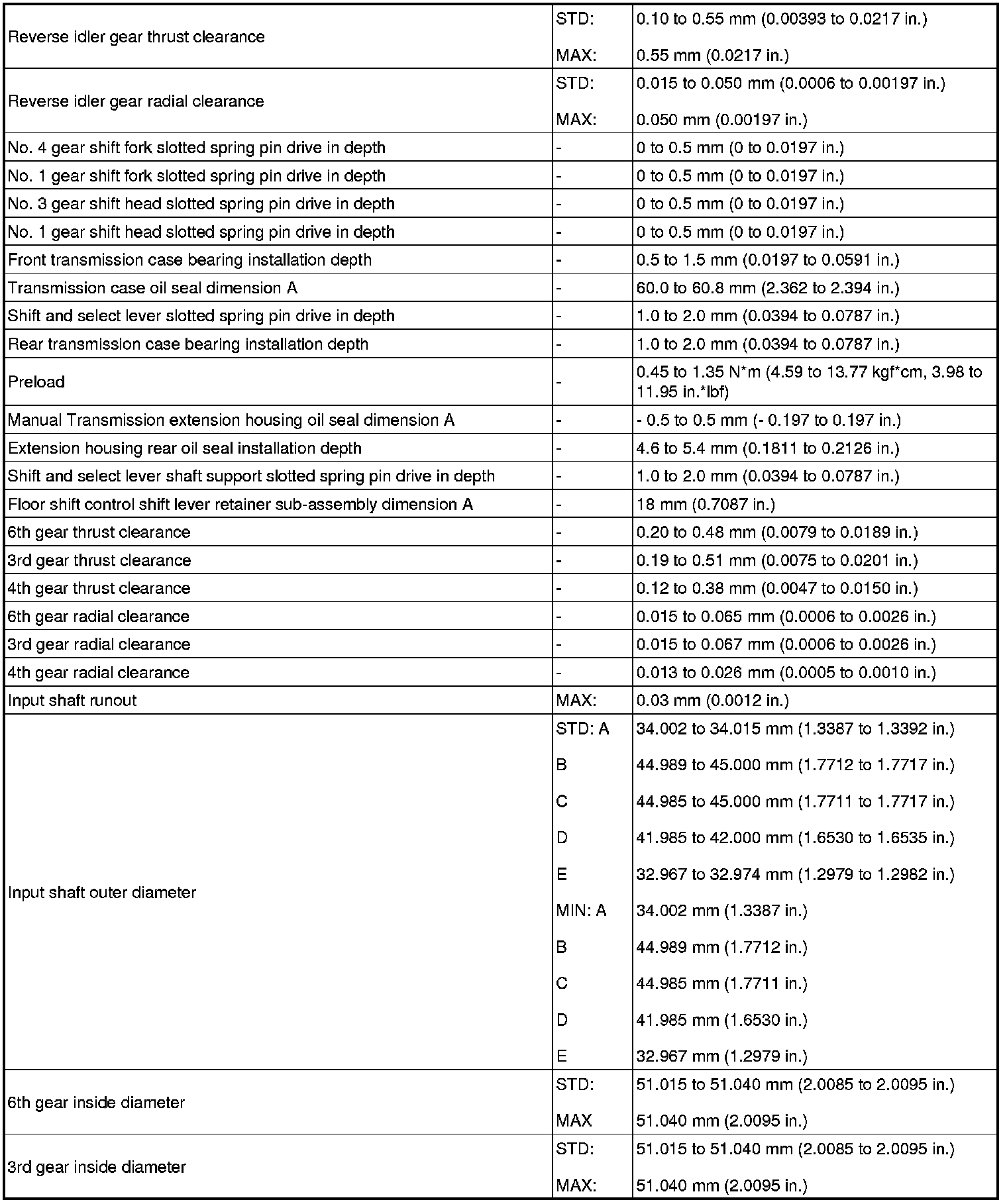 SERVICE SPECIFICATIONS: RA62 MANUAL TRANSMISSION: SERVICE DATA