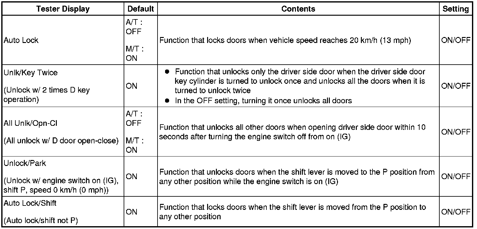 DOOR LOCK: POWER DOOR LOCK CONTROL SYSTEM: CUSTOMIZE PARAMETERS