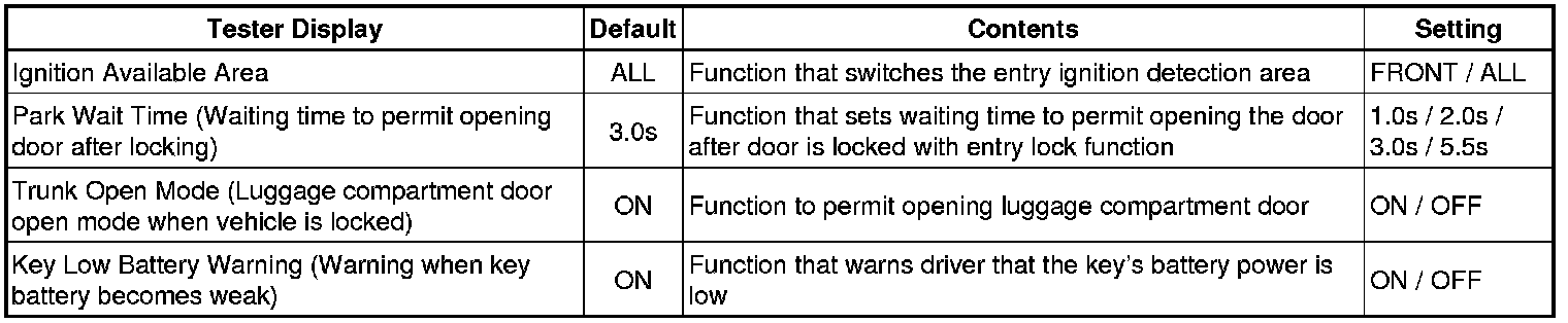 (a) To change the vehicle entry unlock mode, make sure the vehicle power is off and simultaneously press and hold the electrical key LOCK switch and another electrical key switch for 5 seconds.