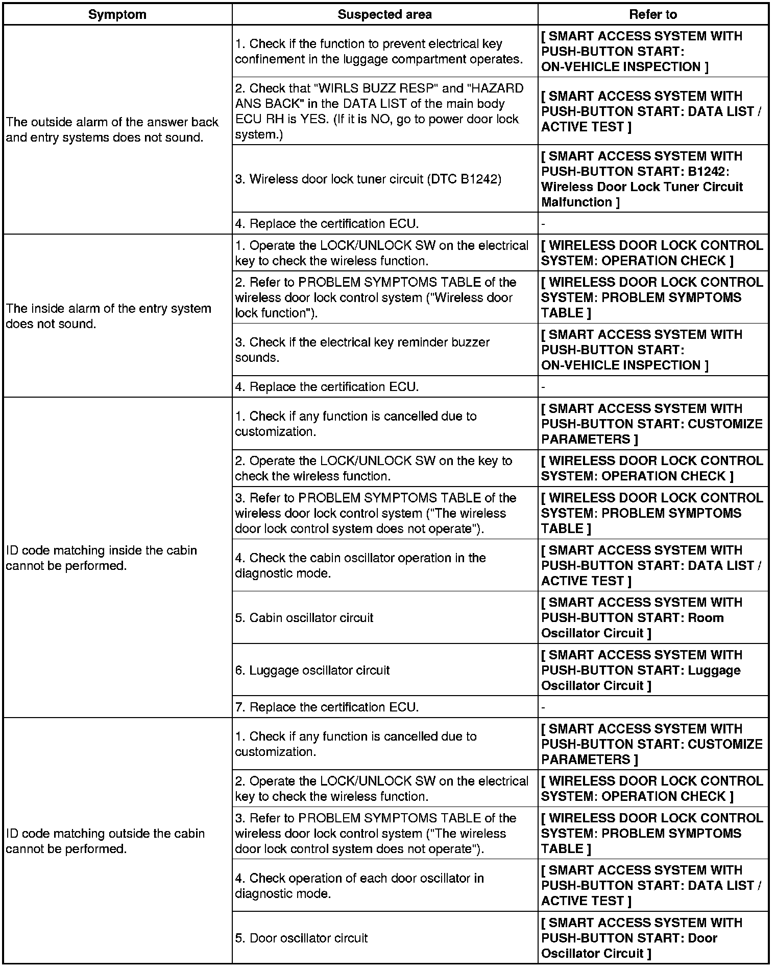 DOOR LOCK: SMART ACCESS SYSTEM WITH PUSH-BUTTON START: PROBLEM SYMPTOMS TABLE