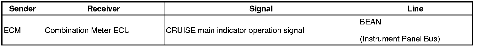 - The ECM illuminates the combination meter's CRUISE main indicator light when it receives a cruise control main switch ON signal.