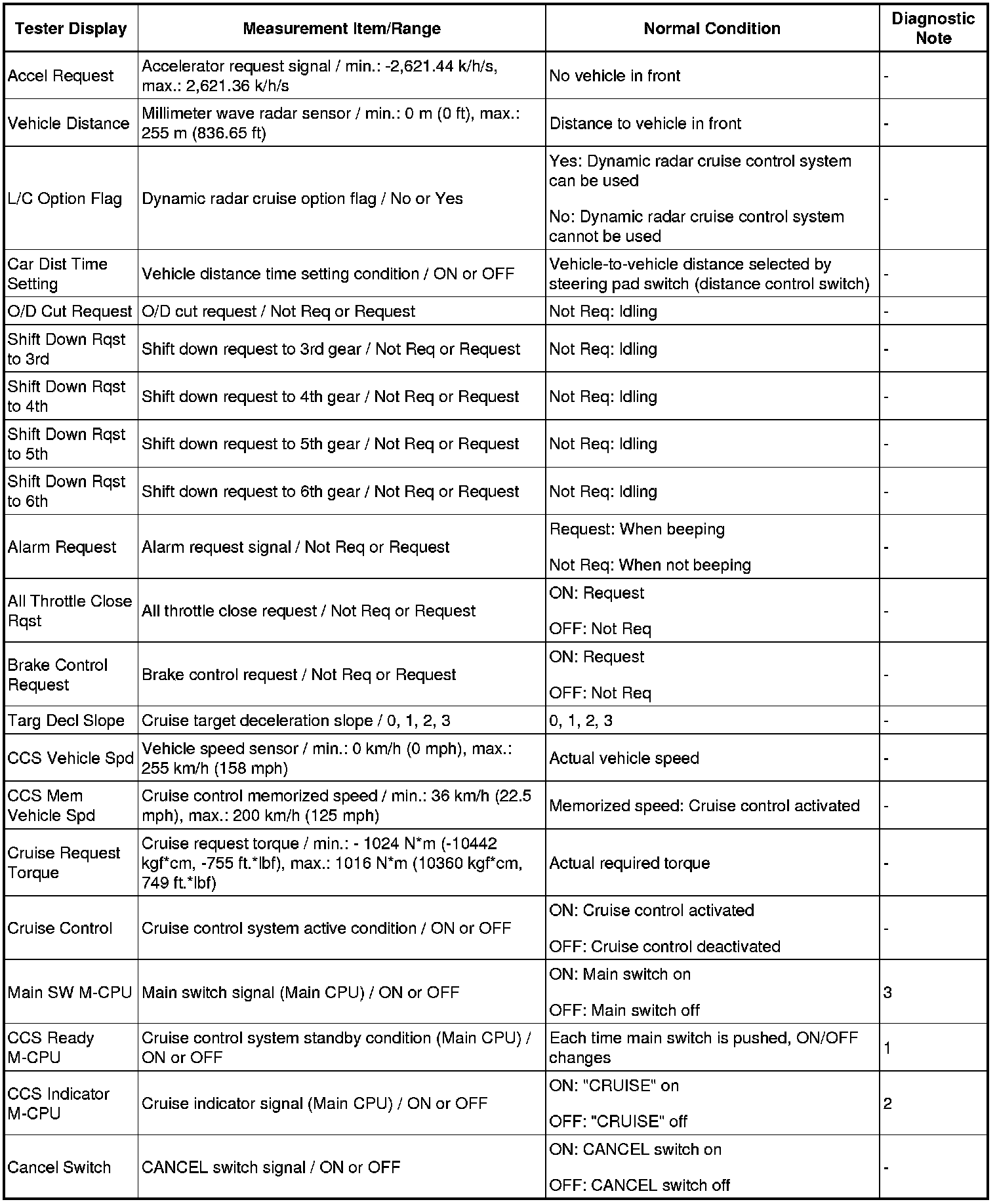 CRUISE CONTROL: DYNAMIC RADAR CRUISE CONTROL SYSTEM: DATA LIST / ACTIVE TEST