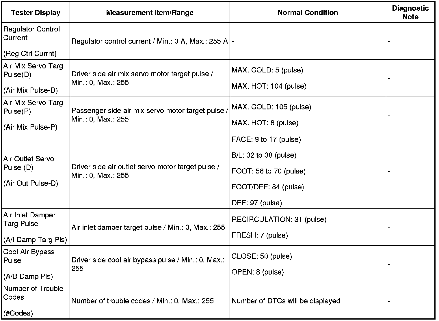 (1) for Air Conditioner: Body Electrical / Air Conditioner / Data List.