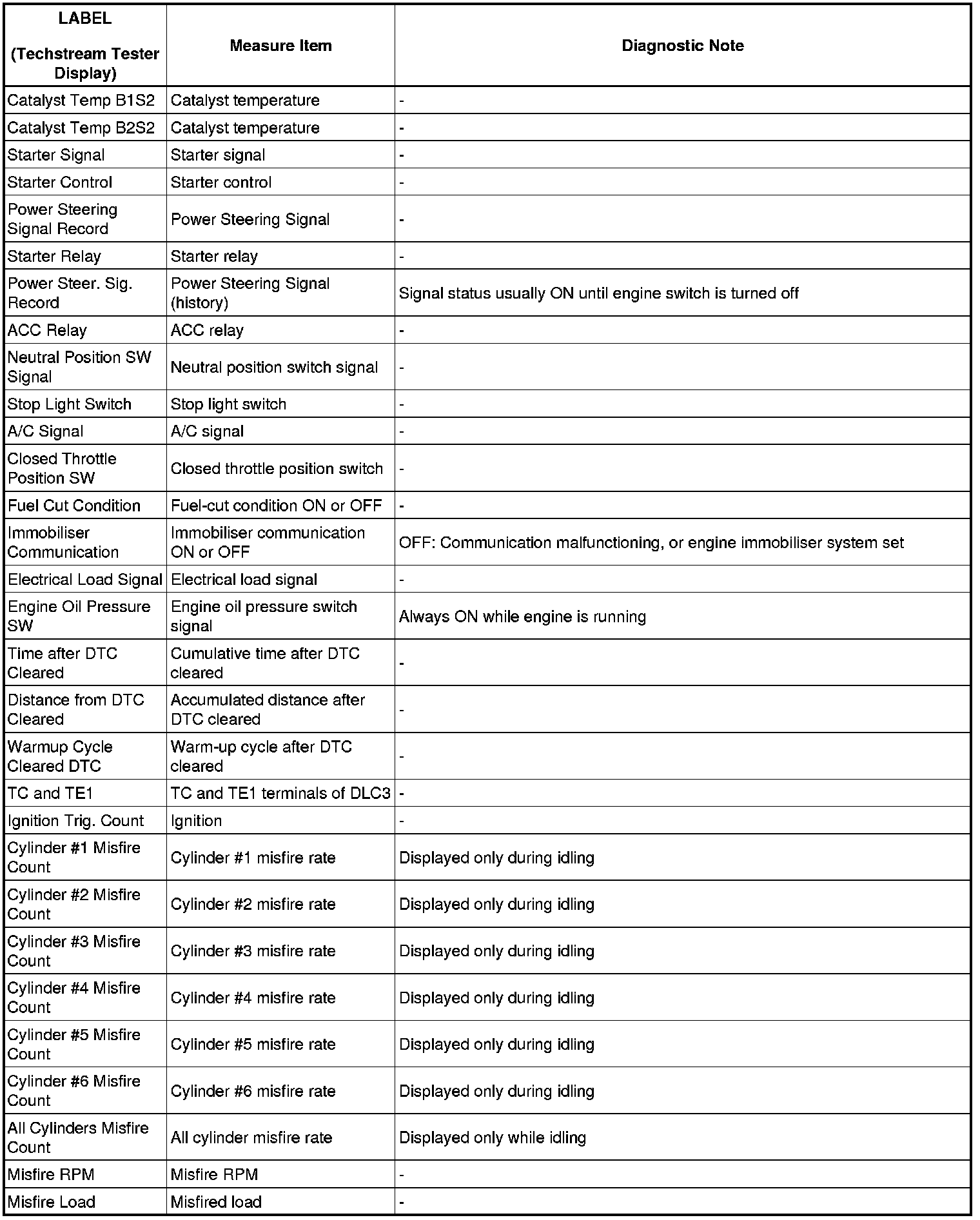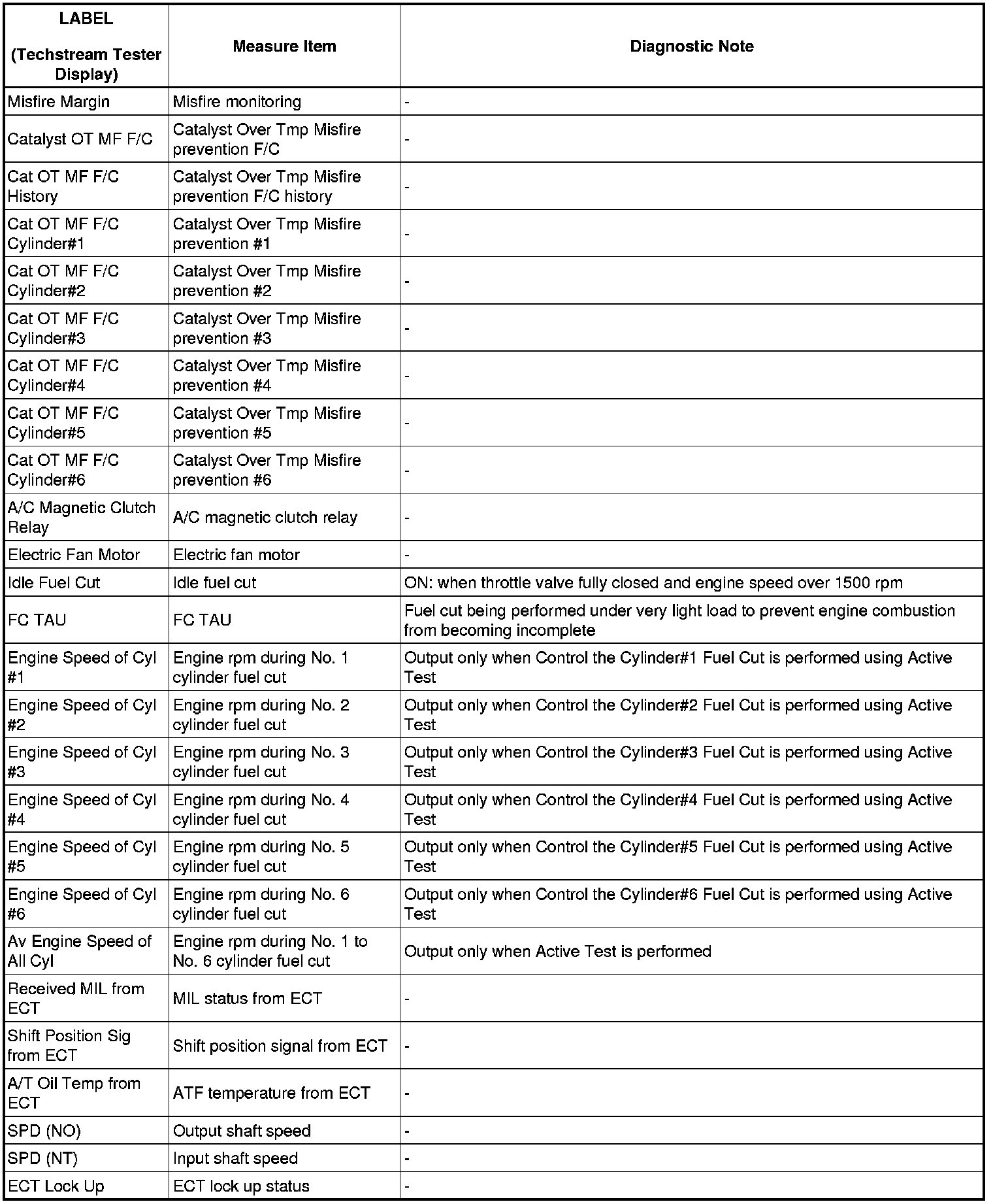 2GR-FSE ENGINE CONTROL SYSTEM: SFI SYSTEM: FREEZE FRAME DATA