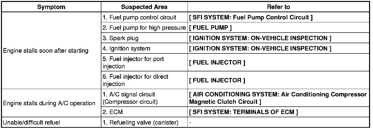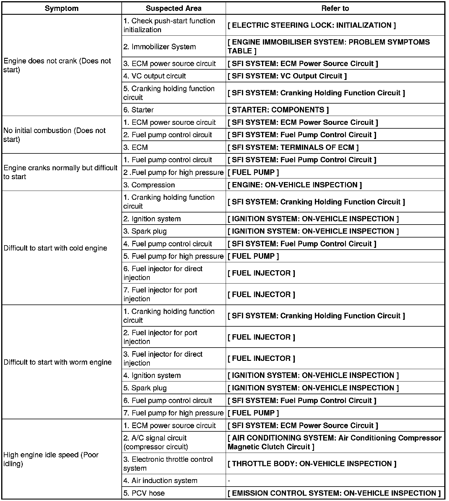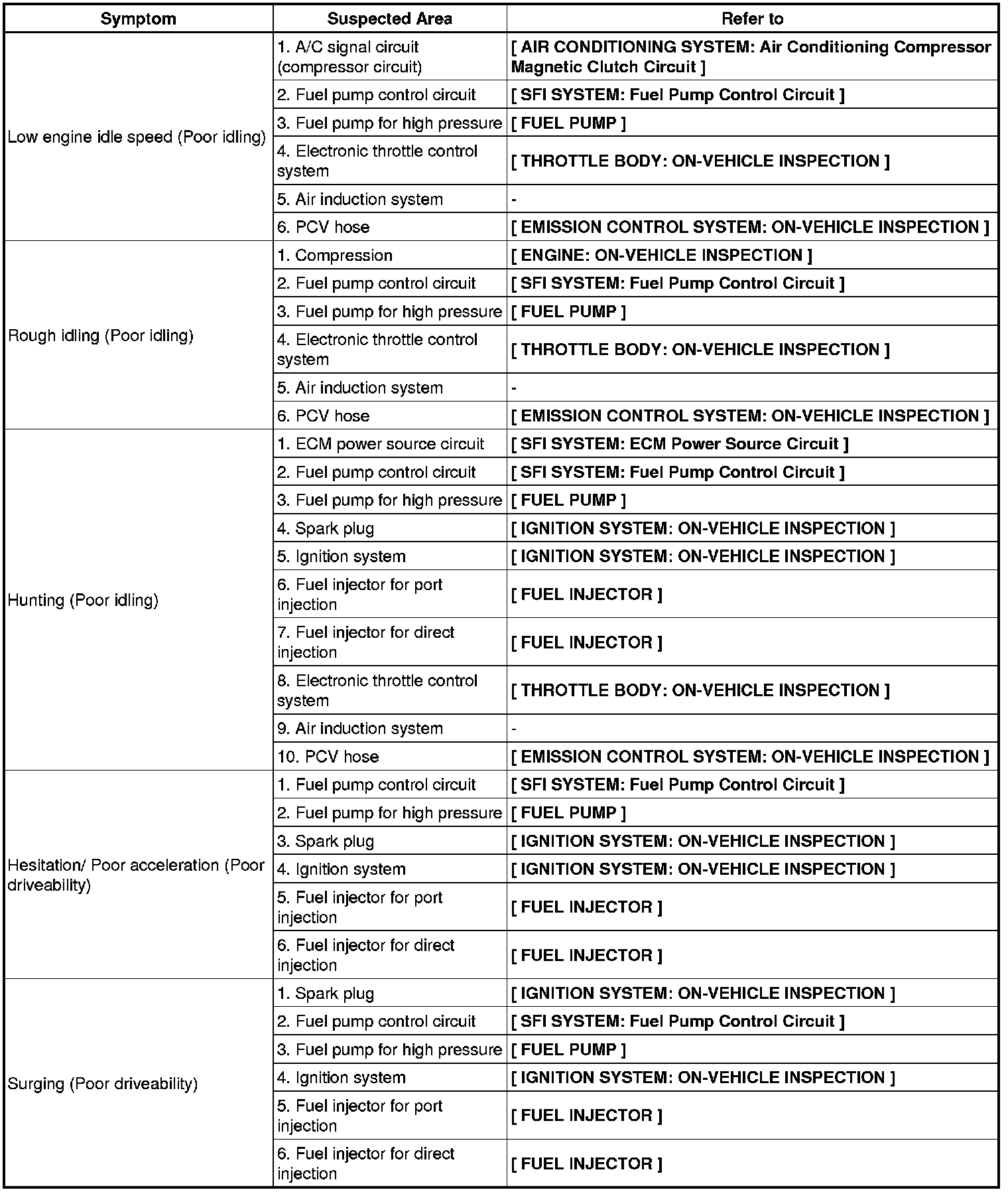2GR-FSE ENGINE CONTROL SYSTEM: SFI SYSTEM: PROBLEM SYMPTOMS TABLE