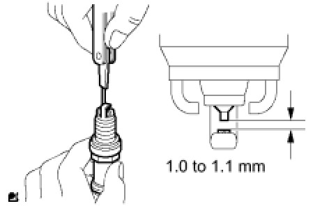 If adjusting the gap of a new spark plug, bend only the base of the ground electrode. Do not touch the tip. Never attempt to adjust the gap of a used plug.