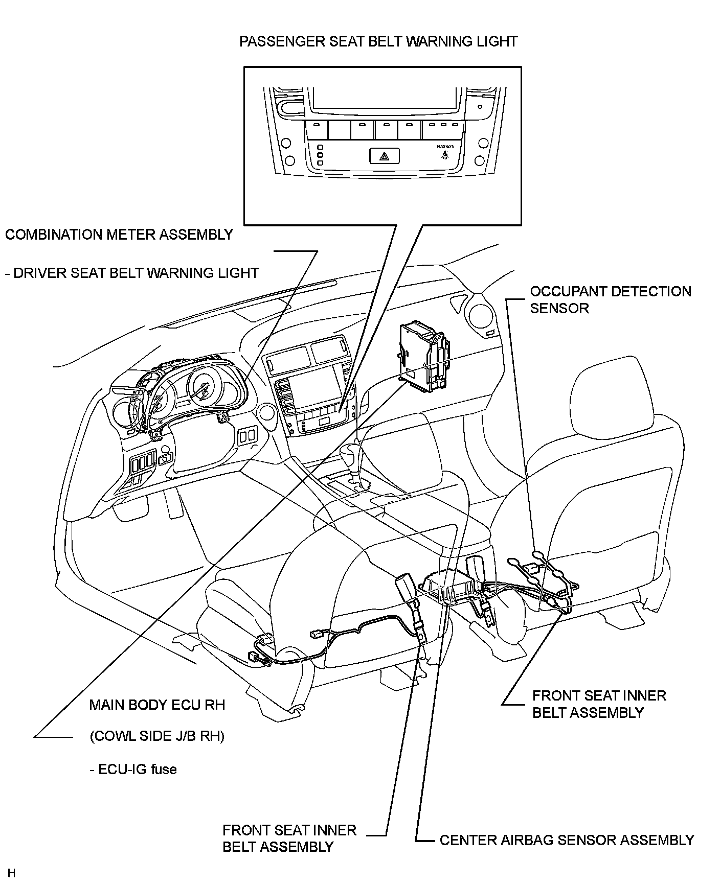SEAT BELT: SEAT BELT WARNING SYSTEM (w/o Occupant Classification System): PARTS LOCATION