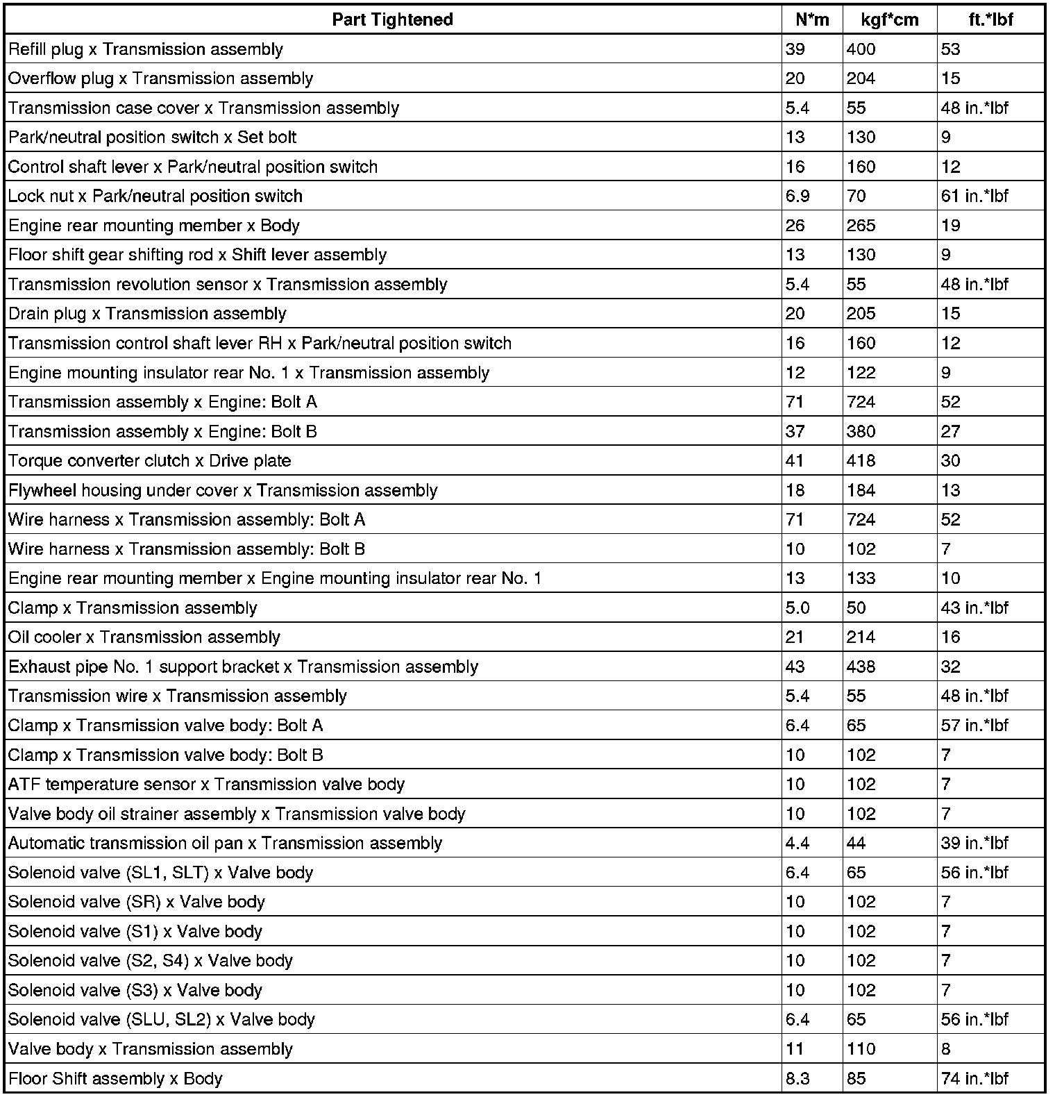 SERVICE SPECIFICATIONS: A760E AUTOMATIC TRANSMISSION: TORQUE SPECIFICATIONS