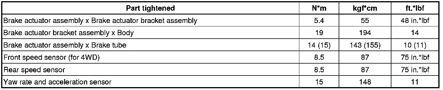SERVICE SPECIFICATIONS: BRAKE CONTROL: TORQUE SPECIFICATIONS