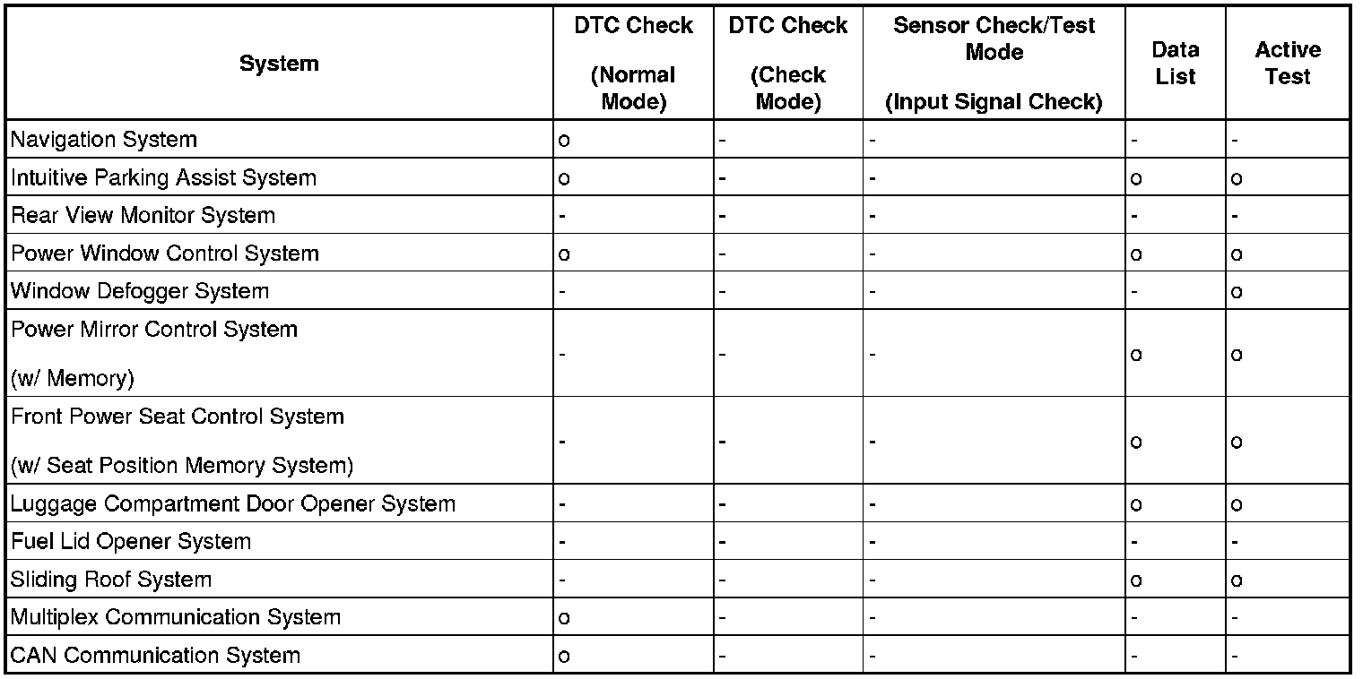 By using these functions, the problem areas can be narrowed down and troubleshooting is more effective. Diagnostic functions are incorporated in the following system in the LEXUS IS250/350.