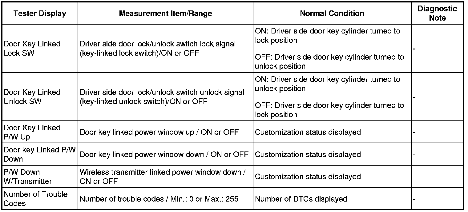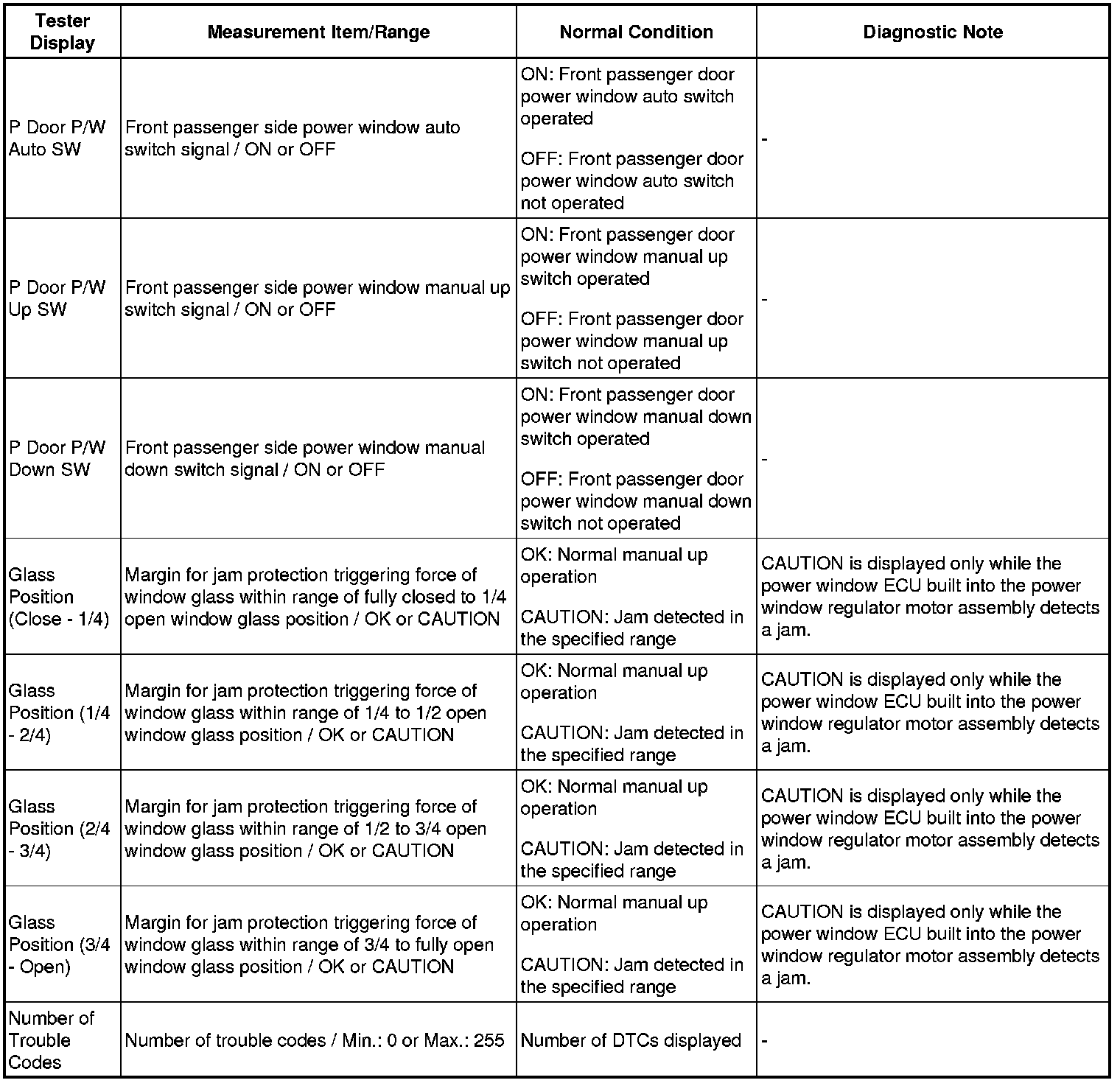 WINDSHIELD / WINDOWGLASS: POWER WINDOW CONTROL SYSTEM: DATA LIST / ACTIVE TEST