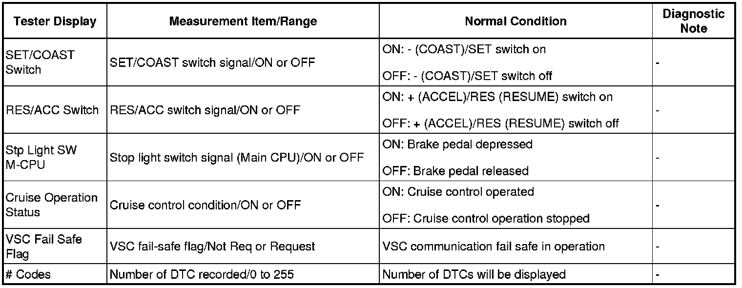 HINT: Using the Techstream to read the Data List allows the values or states of switches, sensors, actuators and other items to be read without removing any parts. This non-intrusive inspection can be very useful because intermittent conditions or signals may be discovered before parts or wiring is disturbed. Reading the Data List information early in troubleshooting is one way to save diagnostic time.
