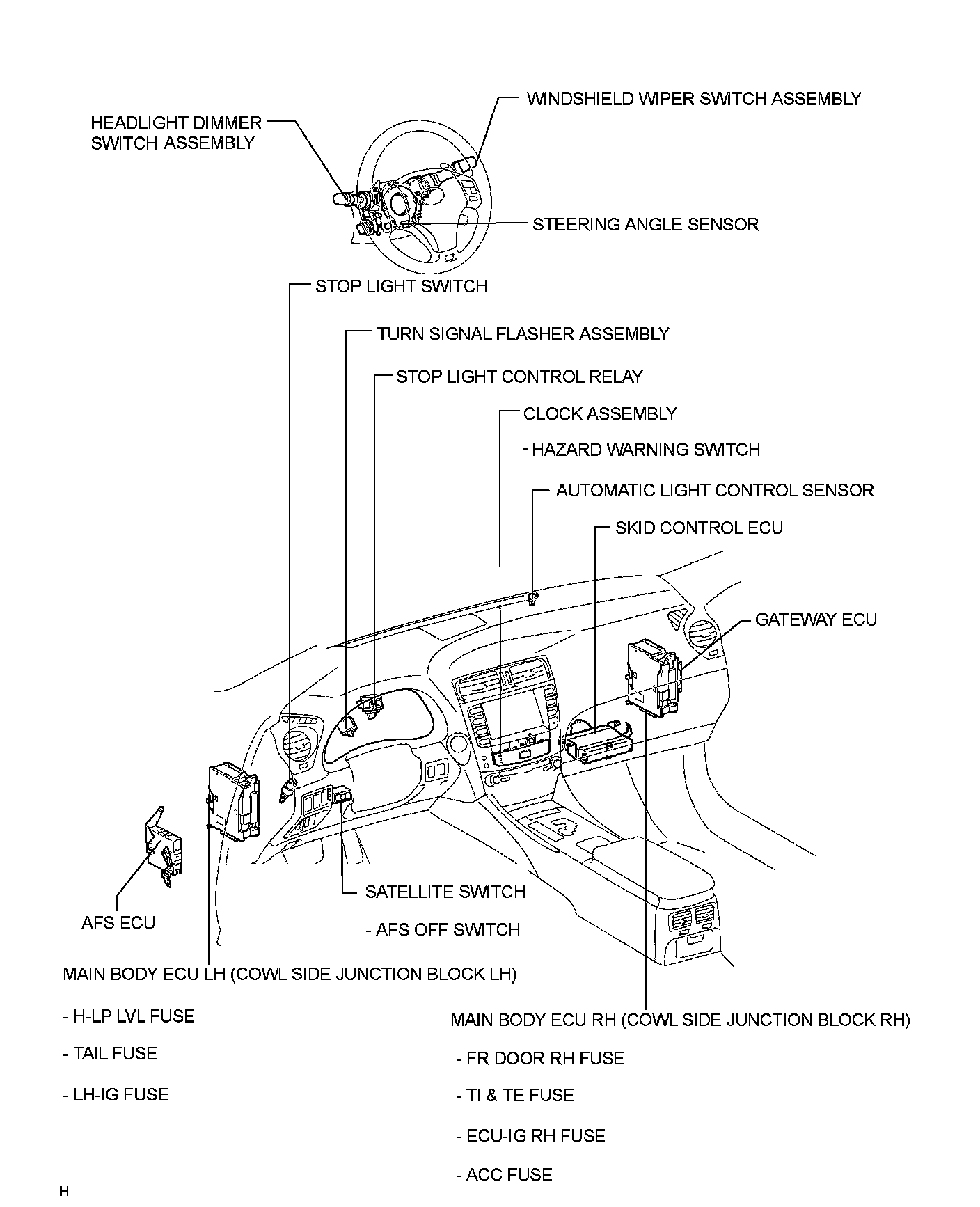 Headlamp Alignment Control Module: Locations