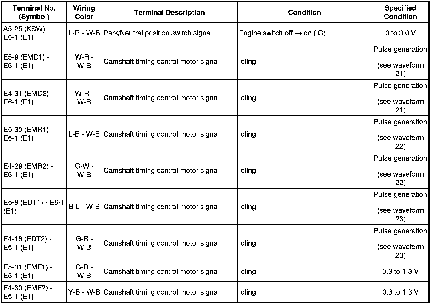 HINT: If the waveform is not similar to the illustration, check the waveform again after idling for 10 minutes or more.