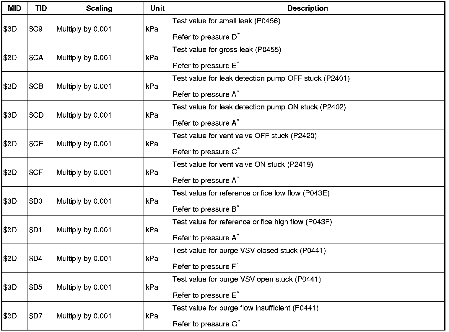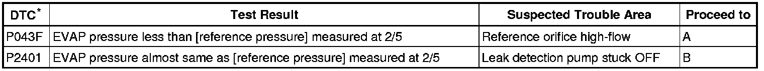 If the reference pressure difference between the first and second checks is greater than the specification, all the DTCs relating to the reference pressure (P043E, P043F, P2401, P2402 and P2419) are stored.