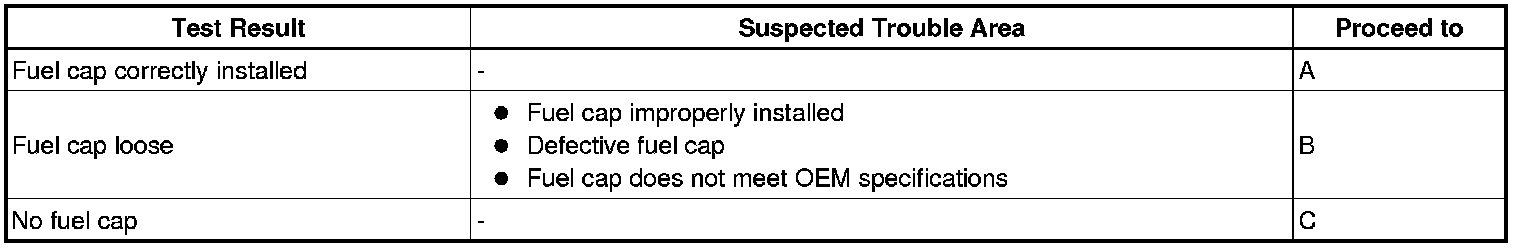 B -- CORRECTLY REINSTALL OR REPLACE FUEL CAP ASSEMBLY