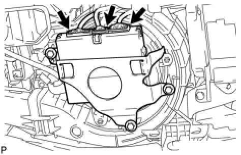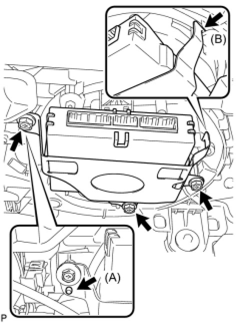 - Securely engage hook (B) of the skid control ECU with the blower assembly.