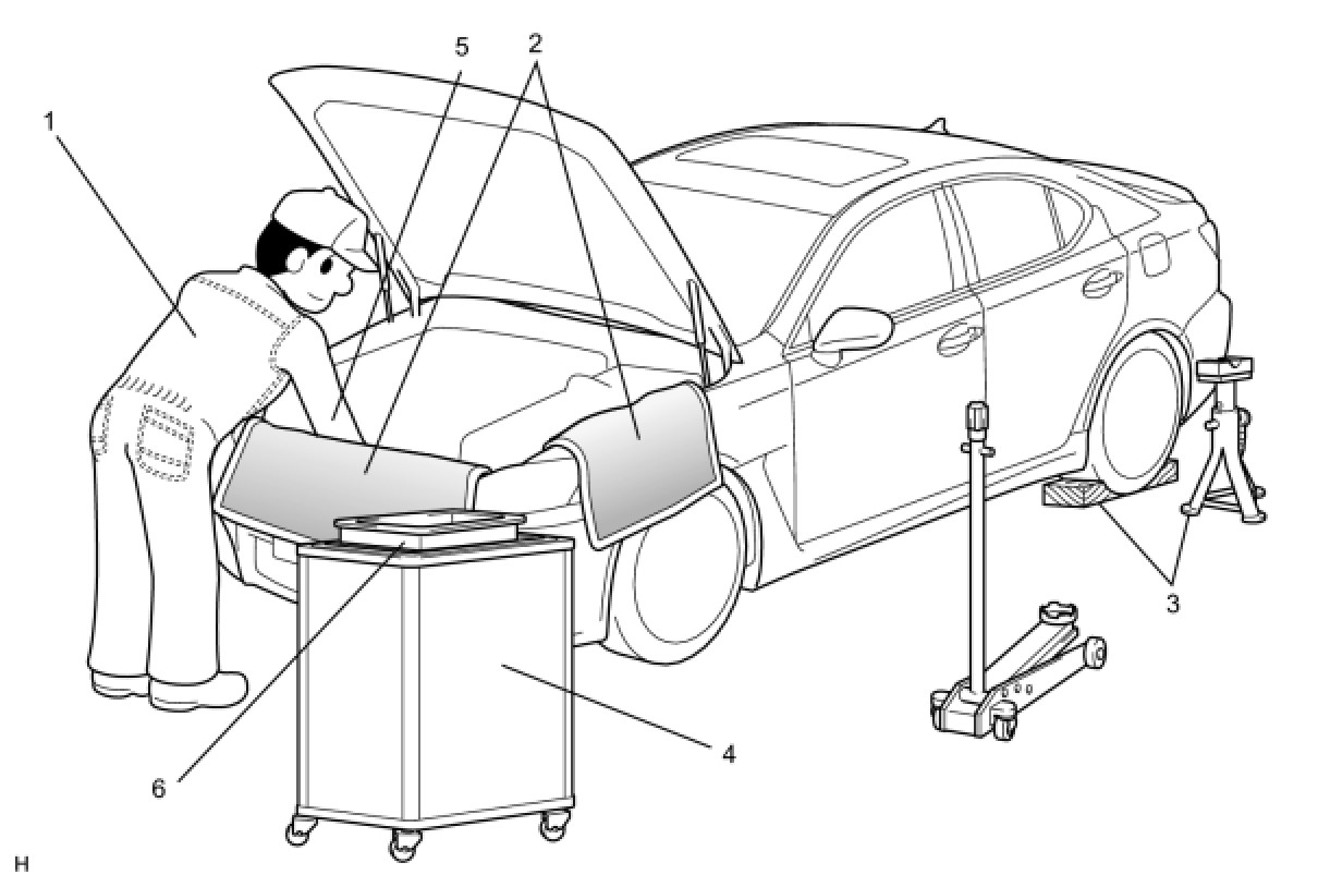 (1) Care must be taken when jacking up and supporting the vehicle. Be sure to lift and support the vehicle at the proper locations.