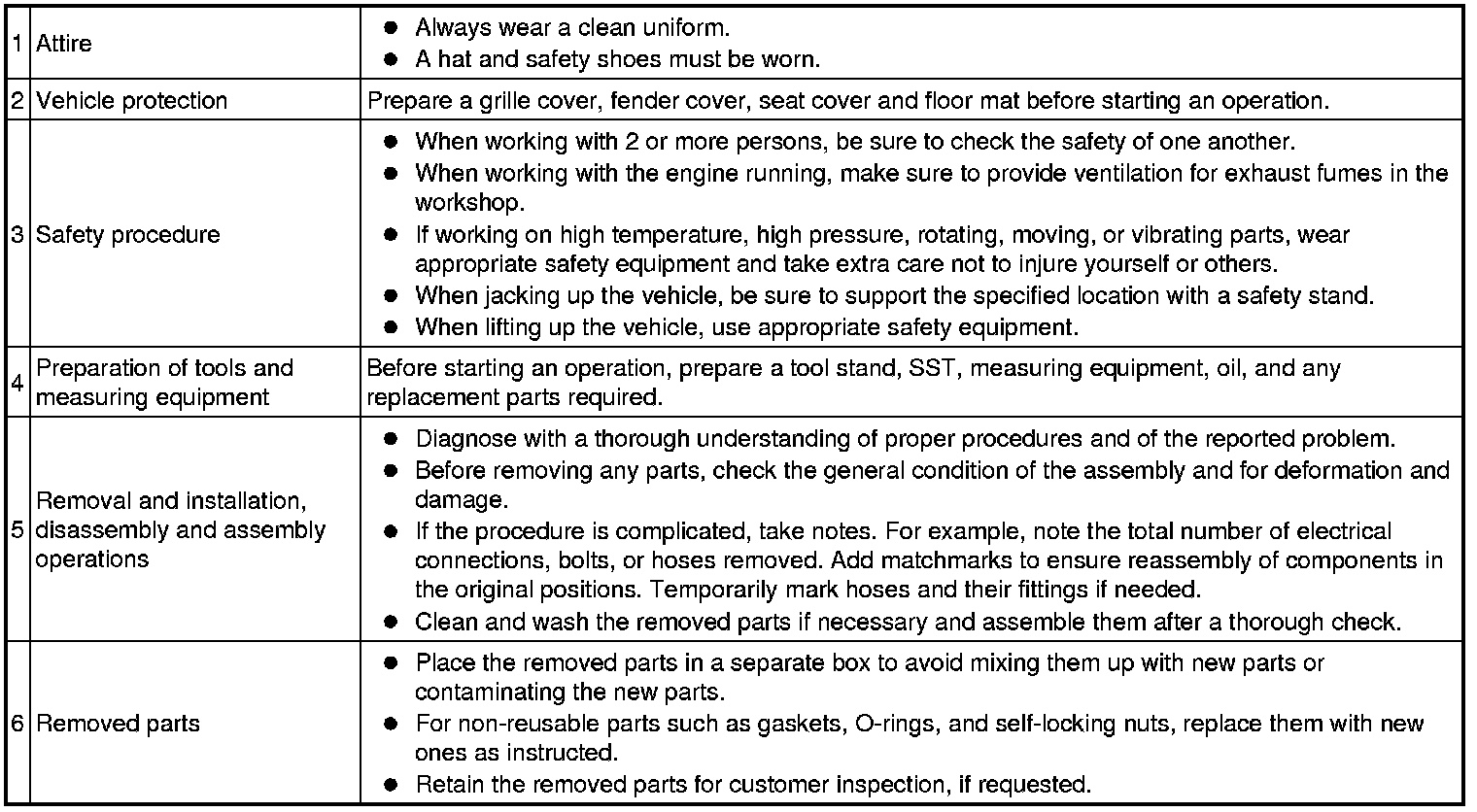 (1) The removal and installation methods of typical hinges, guides, clamps, and pins used for vehicle body parts are shown in the table below.