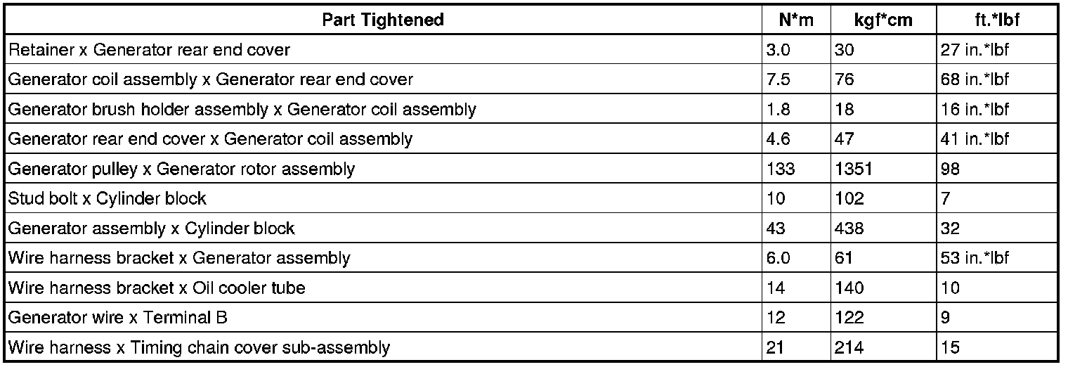 SPECIFICATIONS: 2UR-GSE BATTERY / CHARGING: TORQUE SPECIFICATIONS