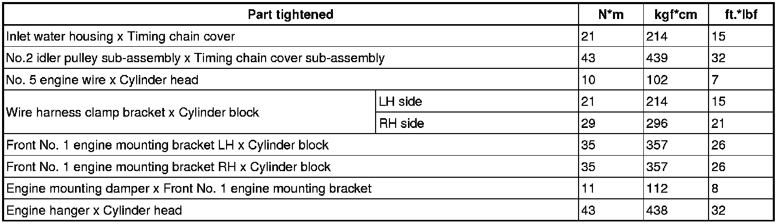 Oil pump cover x Timing chain cover sub-assembly 10 Nm (102 kgf-cm, 7 ft lb)