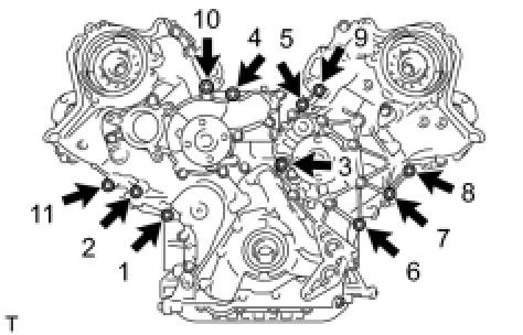 Tighten the 11 bolts in several steps, in the sequence shown in the illustration.
